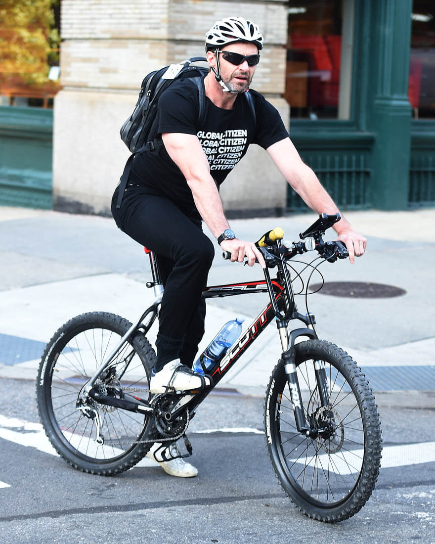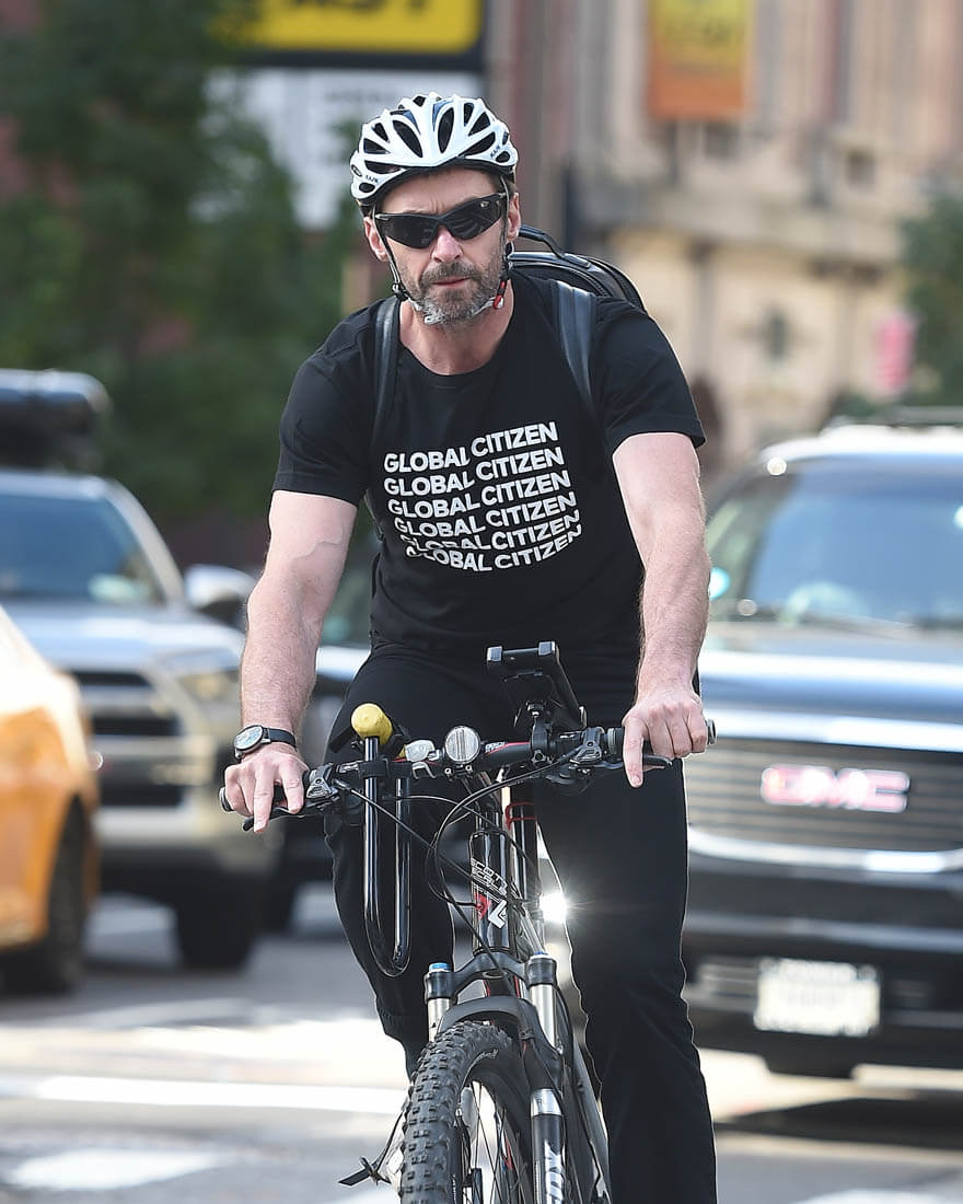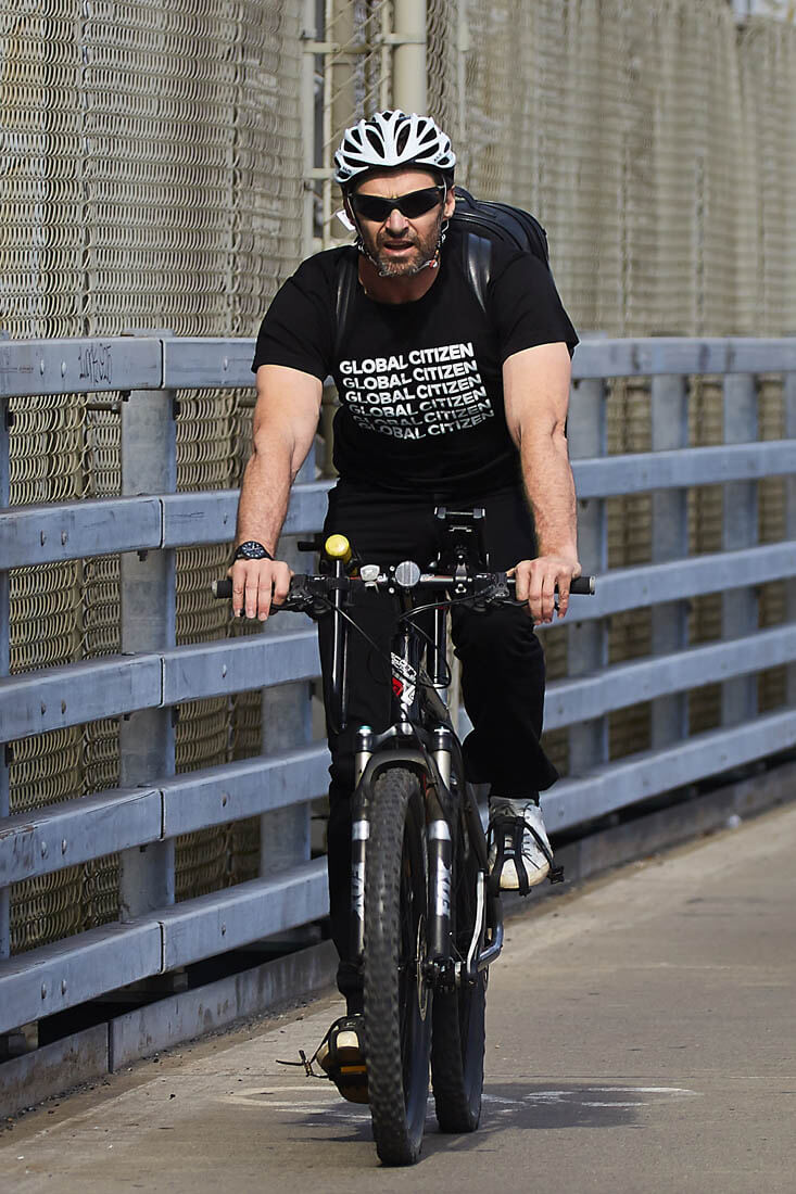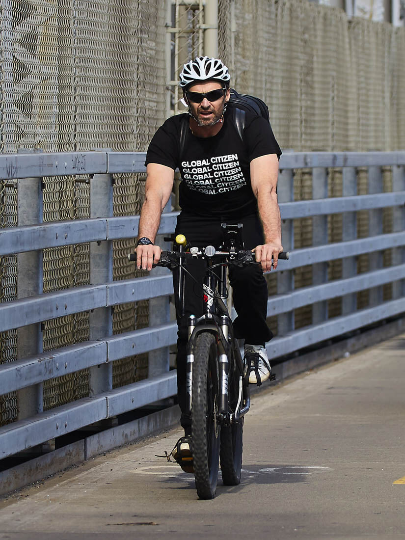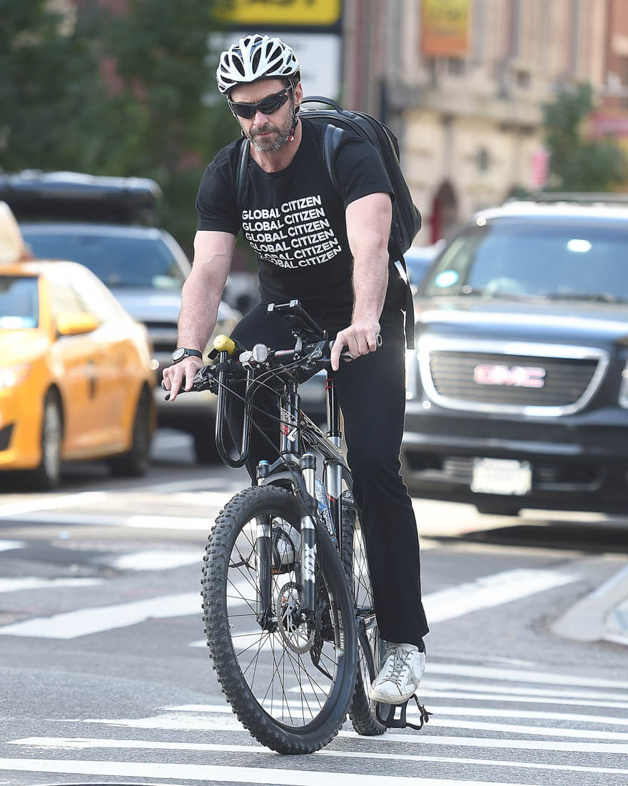 Attached – Hugh riding his bike in New York last week.