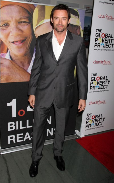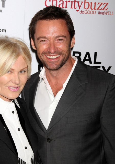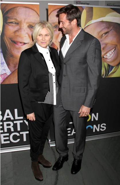 Last night in New York at the Museum of Modern Art for the Global Poverty Project, Hugh Jackman arrived with wife Deborra-Lee, all smiles and in great spirits as usual, ever the most obliging star. Which is perhaps why Spittle seems less vile to me in these photos. I mean he’s still gross, but maybe not as offensively so as usual standing next to Hugh’s charisma. Hugh handed him a tolerable pass.