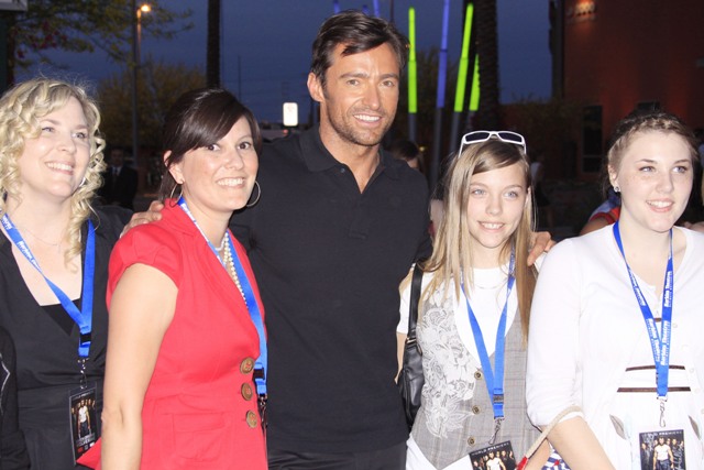 They had a contest or something and eventually Tempe, Arizona was selected as the location of the Wolverine world premiere. So the stars flew in last night for the carpet led by their sweet, humble, generous movie star leader Hugh Jackman who has literally travelled the world in support of this film, tirelessly, and not once has complained or faltered or seemed anything but enormously grateful for his opportunities.