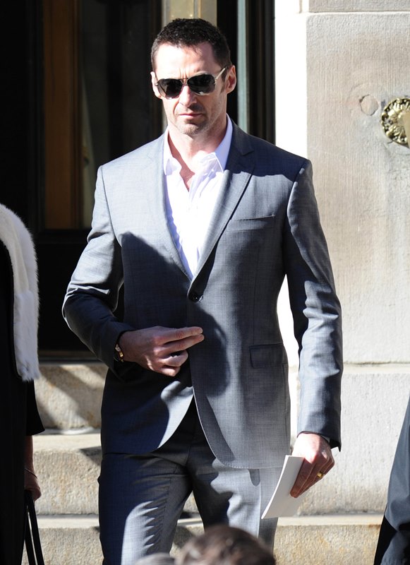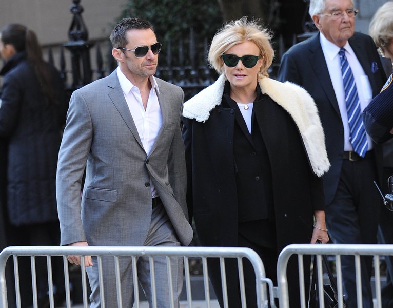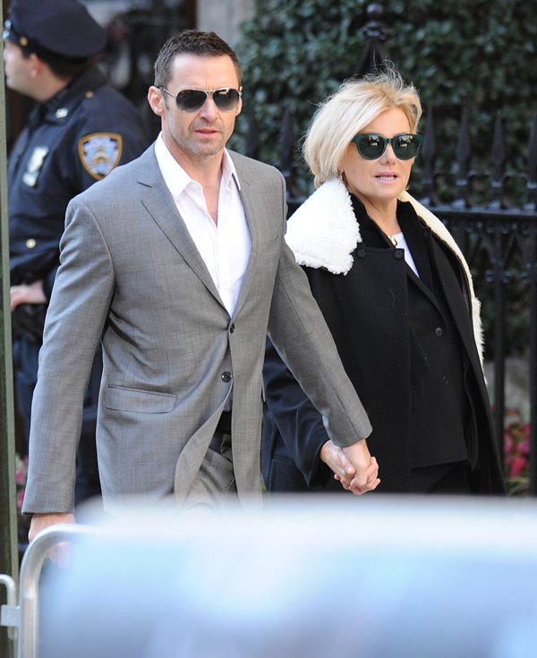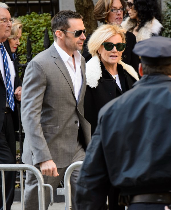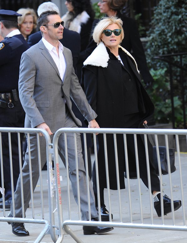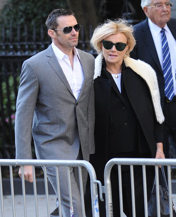 Attached – Hugh Jackman and wife Deborra-Lee Furness leaving the Oscar De La Renta memorial service earlier this week.
