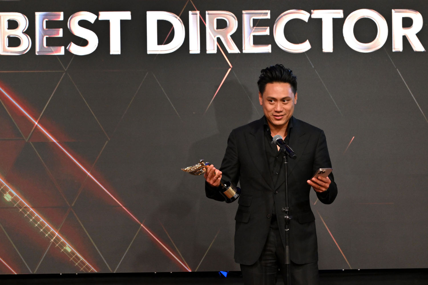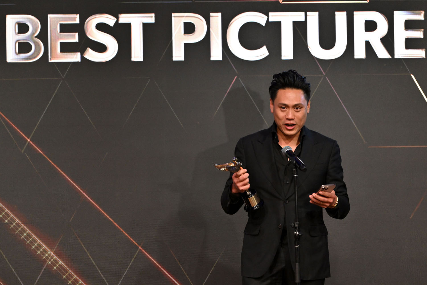Here's Jon at the Astra Awards last night where he won Best Director and Best Picture for Wicked.