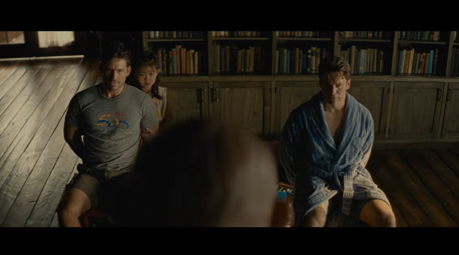 Shymalan’s movies generally don’t make for good trailers because they have to cut around the inevitable twist. Cabin, though, at least lays out the basic premise of the movie in clear terms. Two guys are vacationing in the woods with their obviously precocious daughter, strangers invade their home. For added flavor, the strangers are trying to stave off the apocalypse. Knock at the Cabin is adapted (by Shyamalan, Steve Desmond, and Michael Sherman) from Paul Tremblay’s horror novel, The Cabin at the End of the World, so we get a little more information in this trailer than we normally would. It basically matches up with the logline of the book, which is that two guys and their daughter have their vacation home invaded by apocalyptic types who want them to make an impossible choice. Shades of The Box, but I’m sure there’s more going on here than that. It is M. Night Shyamalan, after all. Adaptation or no, there’s ALWAYS something else.