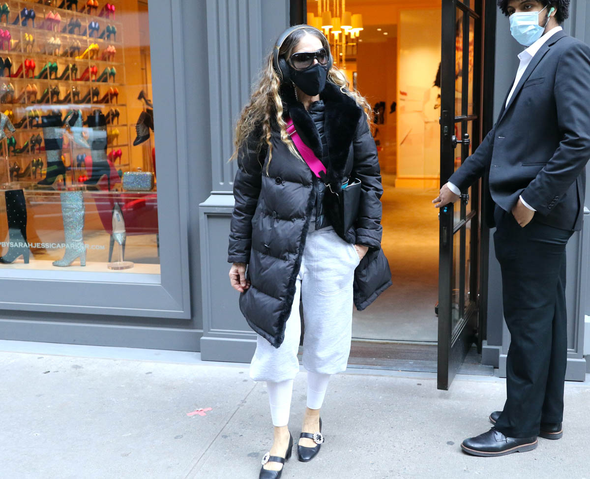 Sarah Jessica Parker’s been conveniently photographed a lot lately at her shoe store, especially since news broke that there will be a new Sex and the City series. But the priority here, for me at least, is these pants she had on the other day. I need these. Very badly.