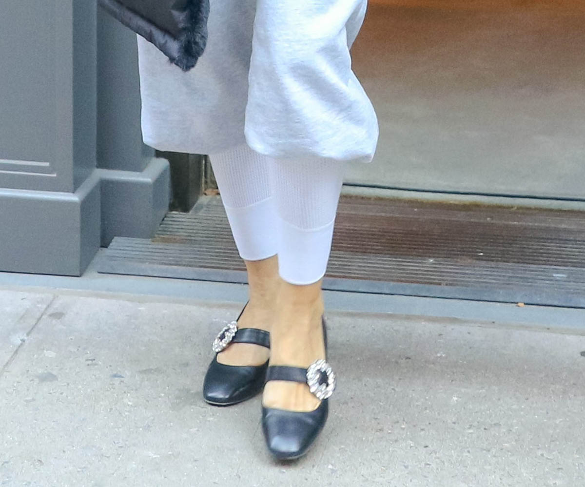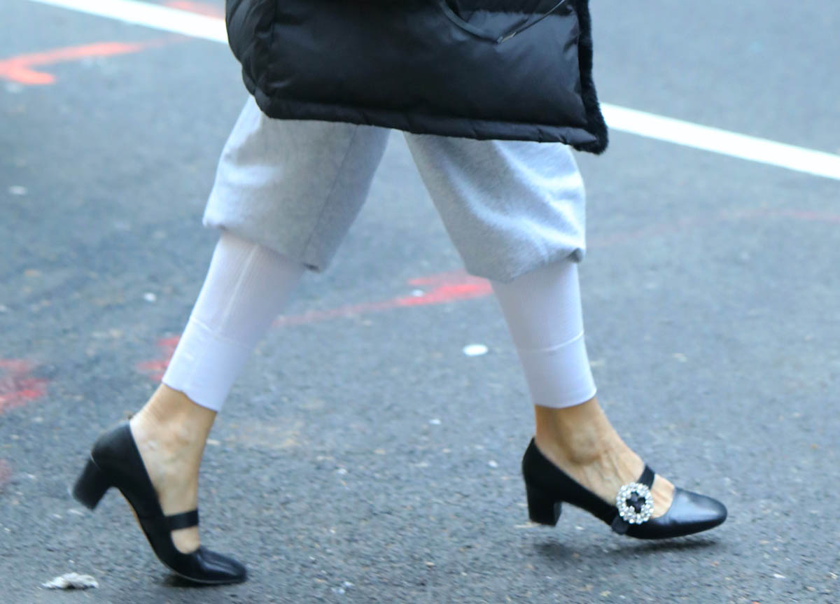 But wait, are they even pants? Or is this a pair of sweatpants over a pair of white tights? It’s much more exciting for me to think they’re one piece, one pair of pants. And if they’re not… someone needs to MAKE them a one piece, design a sweatpant with this sock-like cuff. I’m telling you – they would SELL.