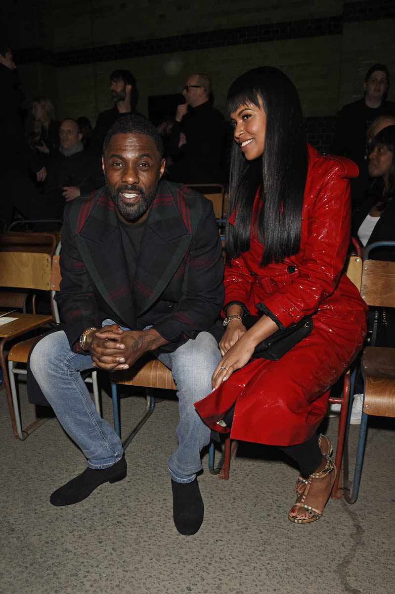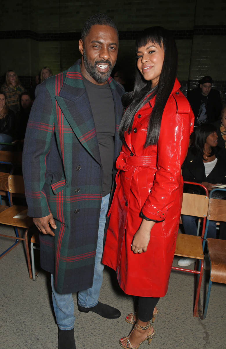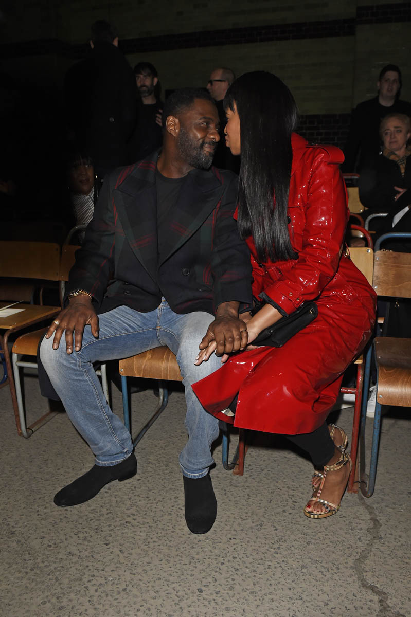 Idris Elba and Sabrina Dhowre are engaged. They’re based in London. It was London Fashion Week this past weekend. So they attended a couple of fashion week events together, making the social rounds for the first time as an engaged couple. And definitely acting like an engaged couple. You know how it is. Engaged couples at the beginning of their engagement are loved up all the time everywhere. Them and teenagers at the beginning of their relationships.