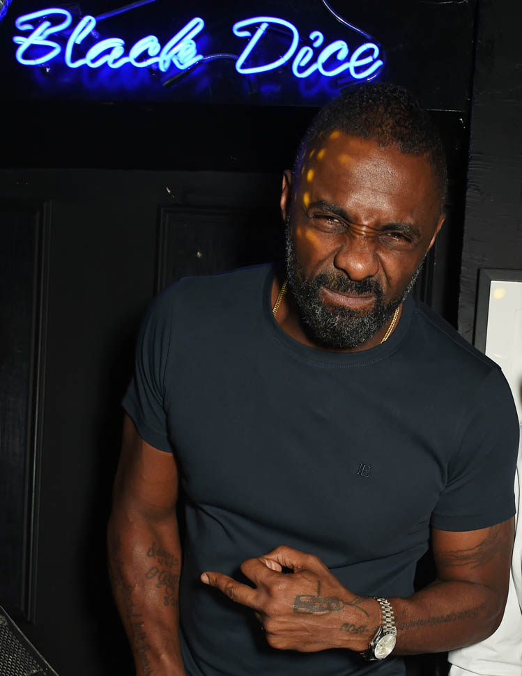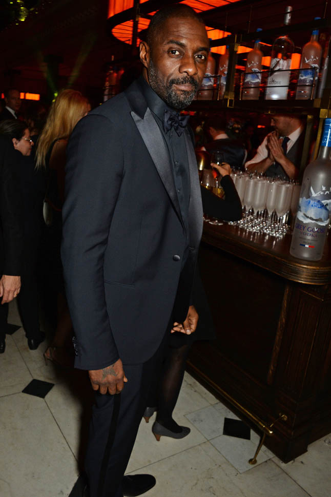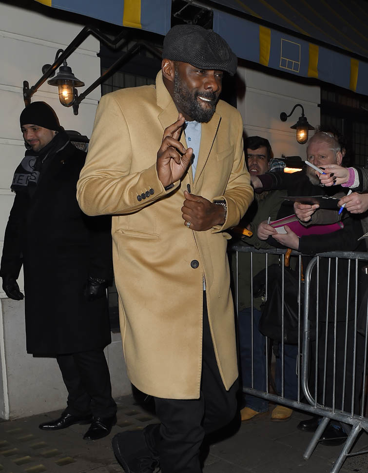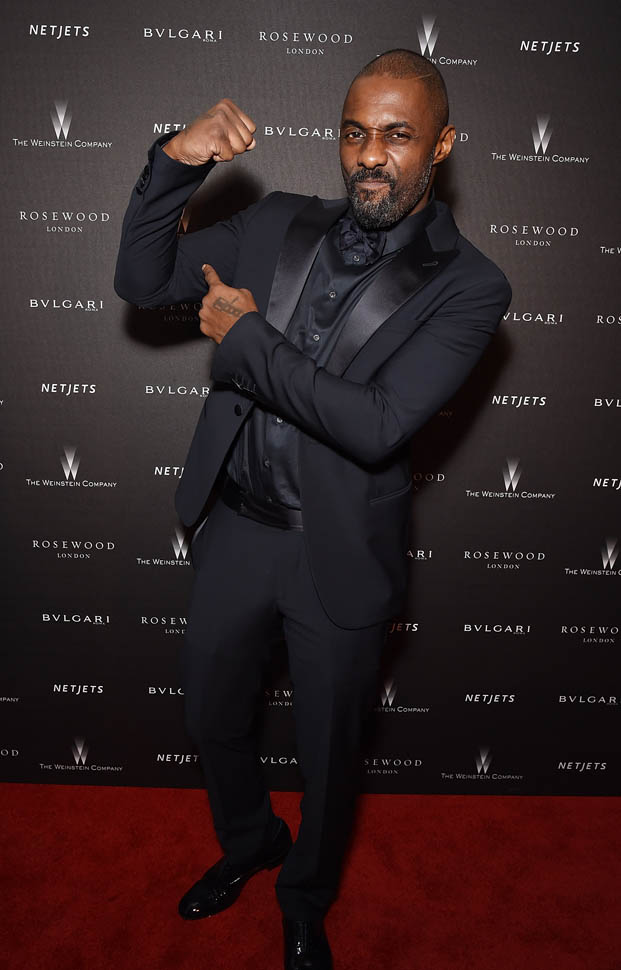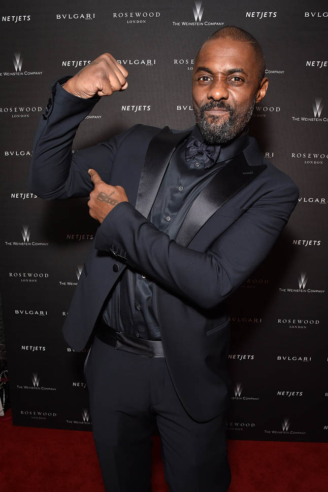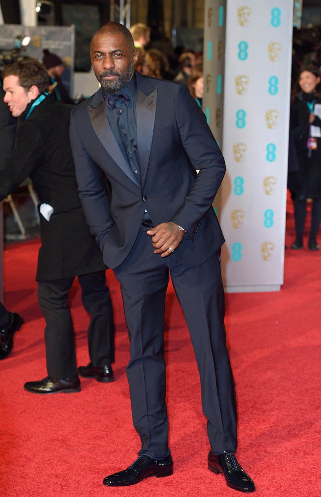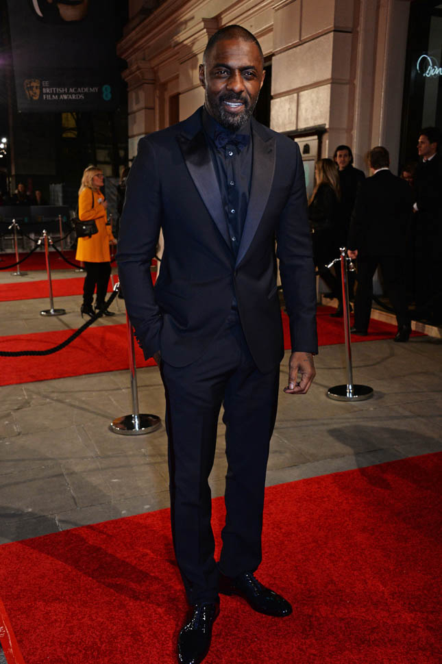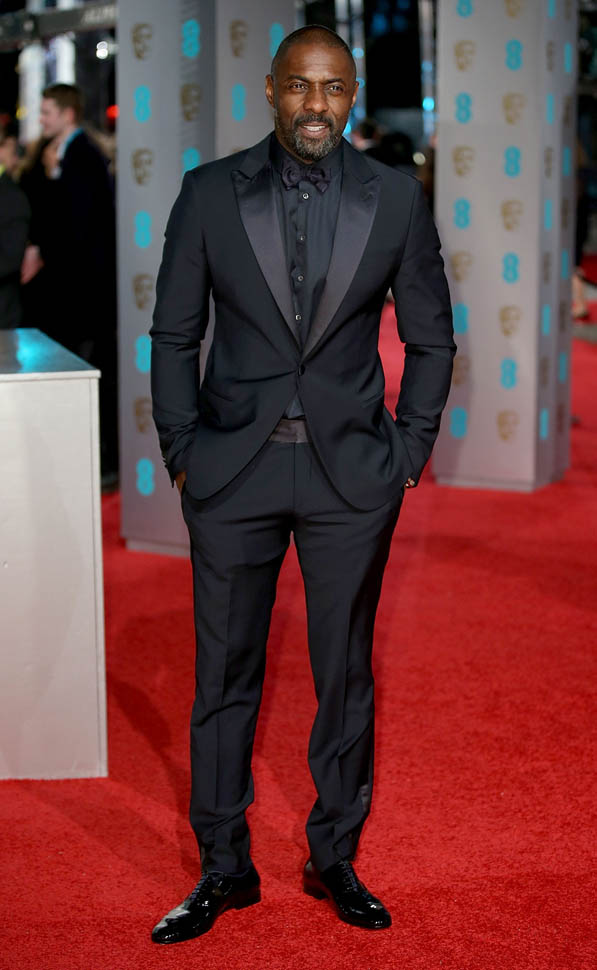 Idris Elba at the BAFTAs. I’ve got black and white shots. I’ve got colour photos. He’s pumping his bicep. He’s sticking his tongue out. He’s smiling. He’s not smiling. He’s DJ’ing. He’s wearing a camel overcoat.