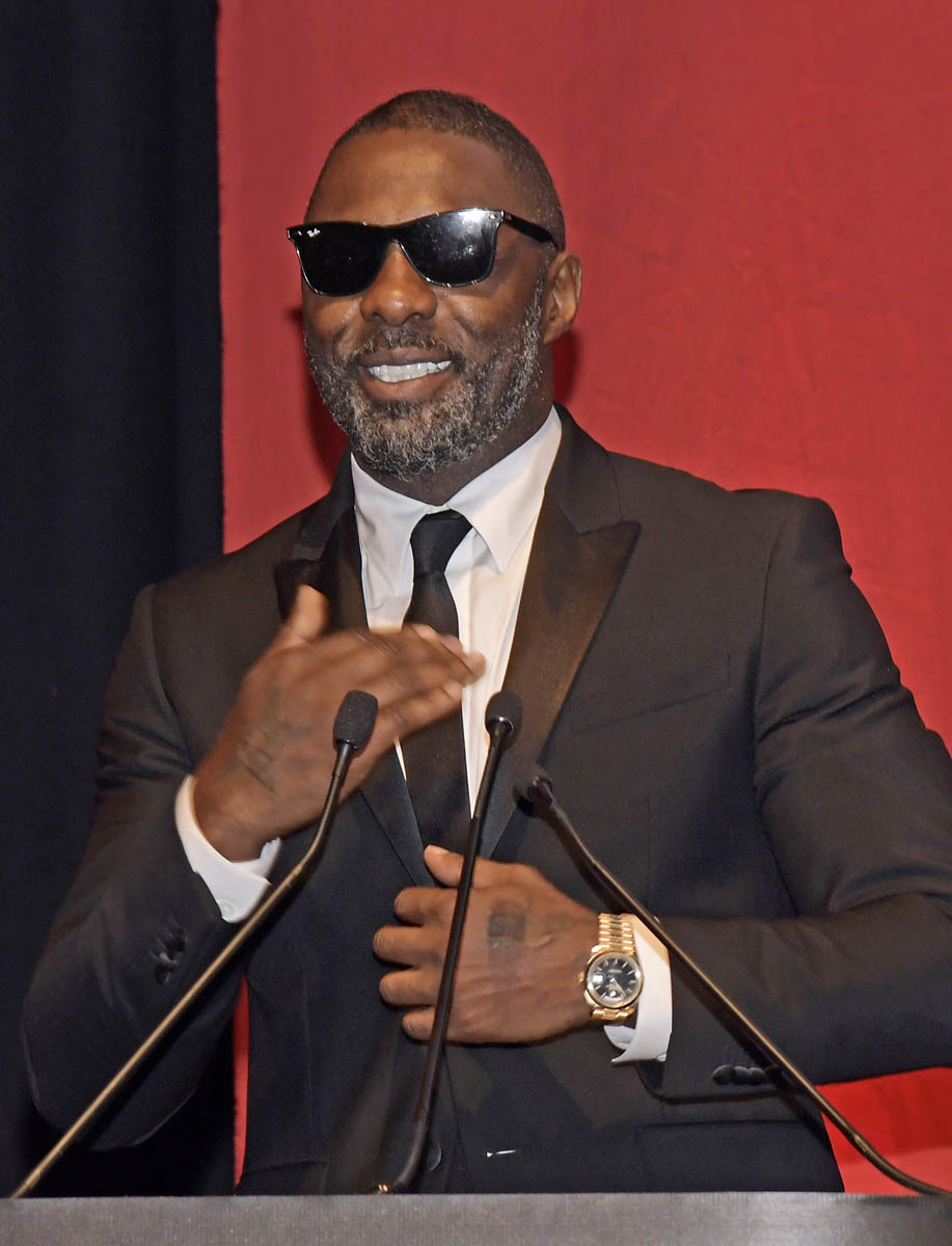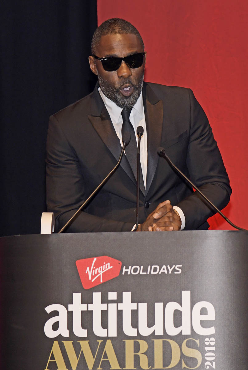 Here’s Idris the other day with fiancée Sabrina Dhowre in London.