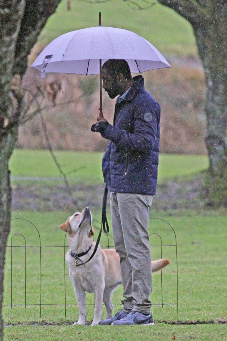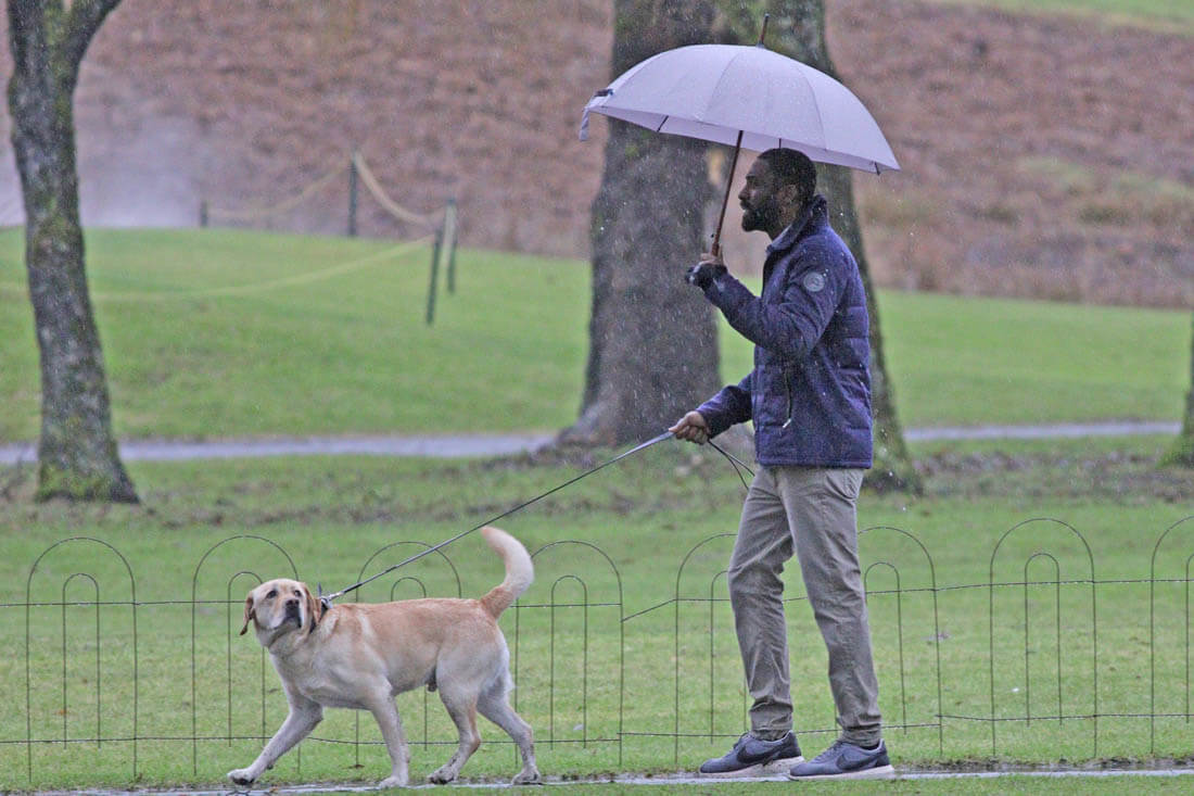 Idris Elba is already hot, without assistance from a dog. But here’s Idris Elba in Vancouver yesterday on the set of The Mountain Between Us, with a dog, and he’s exceeding hotness levels, even by his standards. The dog agrees. Look at that shot of the dog sweetly gazing up at Idris. Hi Idris. I love you. Where are we going next? I will follow you. That dog is me.