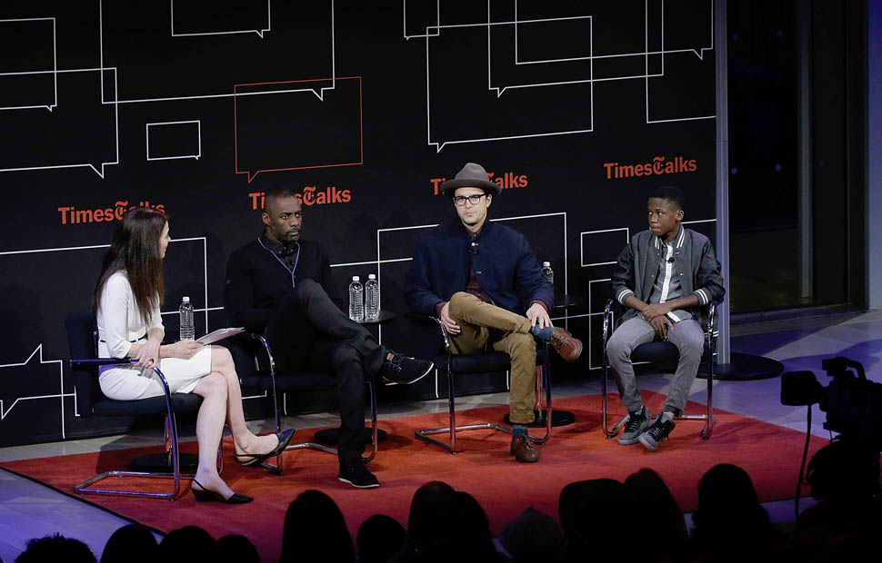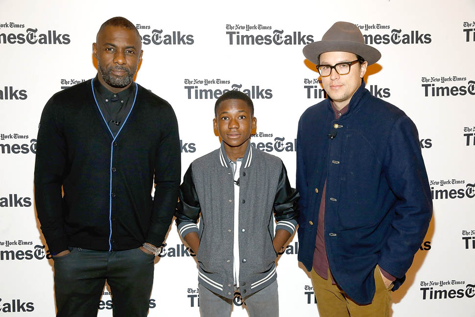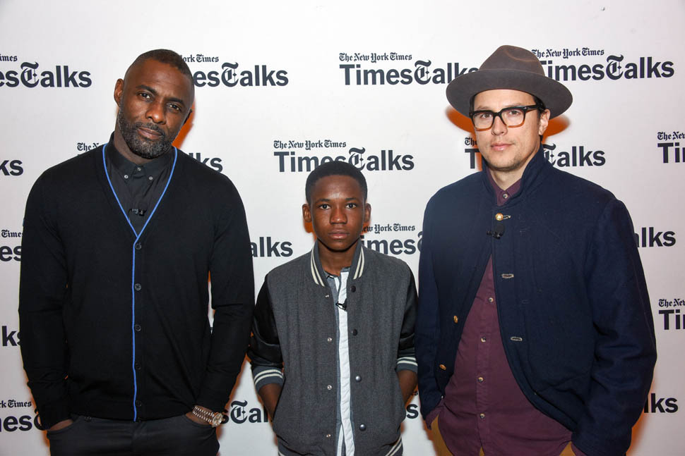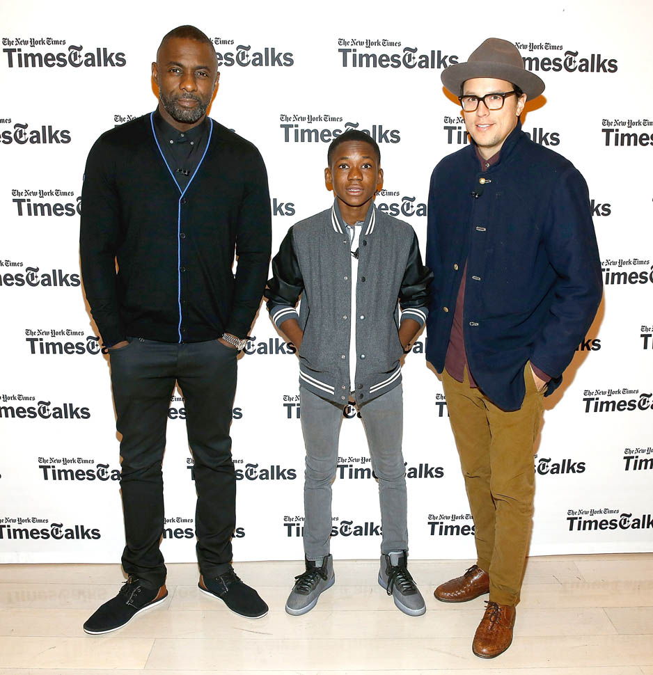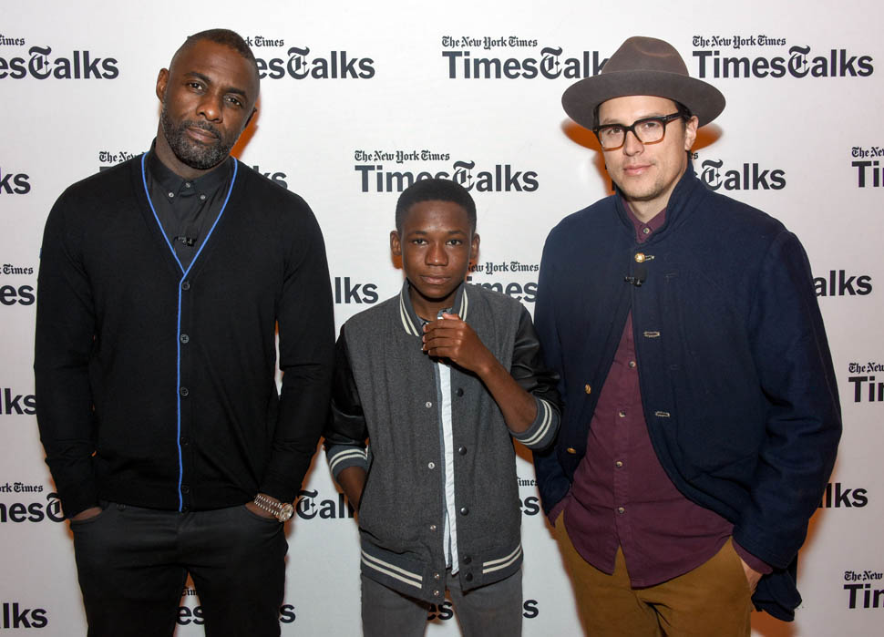 Idris Elba is in New York. Check him out, fine as f-ck, walking around in a red beanie yesterday. Earlier this week, Idris, Abraham Attah, and Cary Fukunaga were promoting Beasts Of No Nation at TimesTalks. Netflix is doing whatever they can to make these nominations happen.