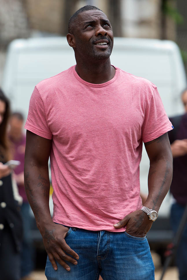 But…I’m here to offer new photos of Idris Elba. He’s promoting Star Trek Beyond. He’s wearing pink t-shirt and jeans. He’s perfect.