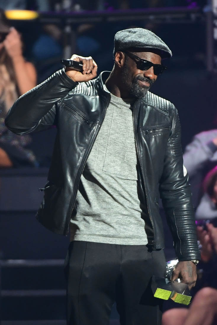 Idris Elba was at the MTV EMAs the other night. God.Damn. In that shirt with just the rigggghhtt amount of cling. Wearing the f-cking sh-t out of those pants. And that leather jacket. That’s really all you need in this post. But the UK Sun is reporting that he was making moves with model Jourdan Dunn that night. They were seen getting close at an after-party and supposedly left together holding hands. Here’s a photo from Instagram of Idris seemingly incapable of staying too far away from her: