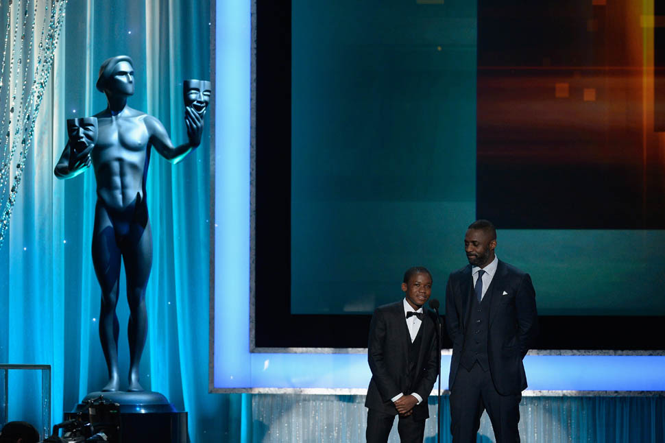 Idris Elba won twice at the SAG Awards on Saturday, first for his performance in Beasts Of No Nation and then for his performance in Luther. He was also nominated, alongside his Beasts Of No Nation co-star Abraham Attah, for Best Ensemble. And while they were presenting the film together, Idris opened with the statement: “Welcome to diverse TV”.