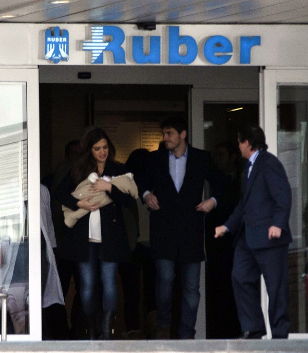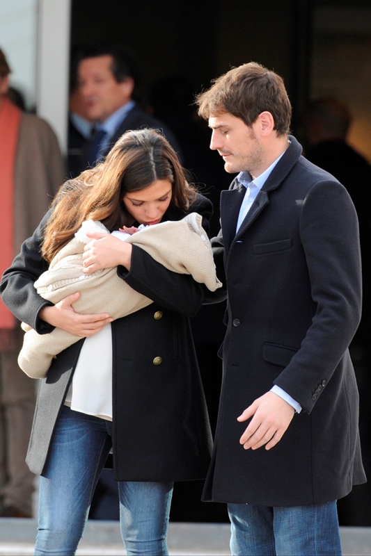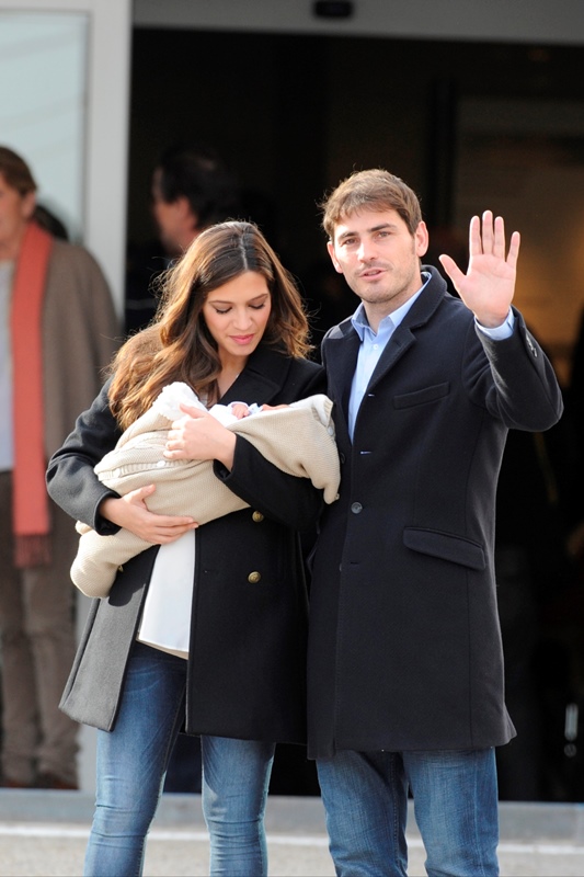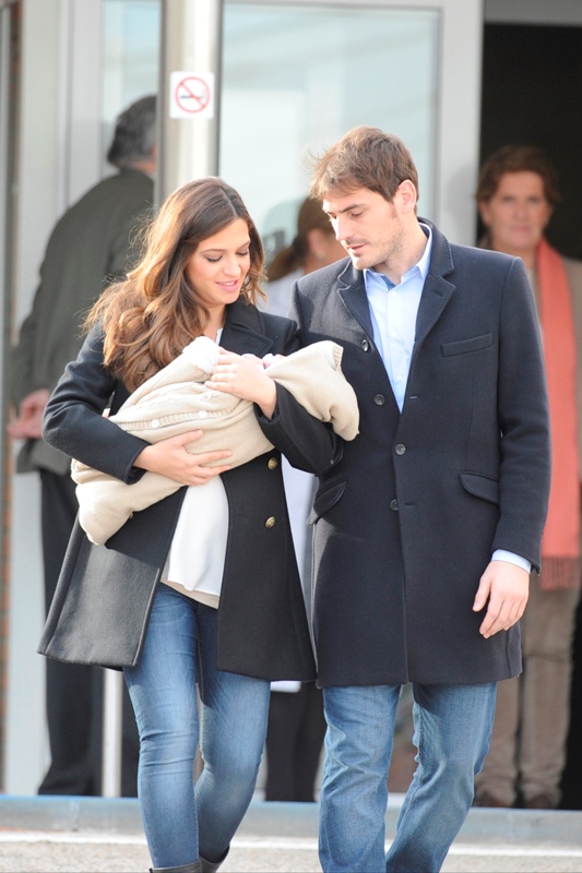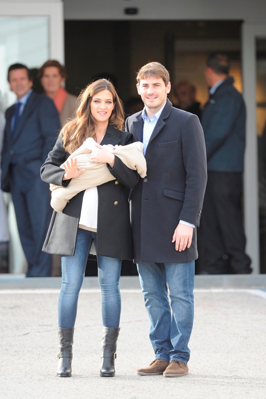 As reported last week – click here for a refresher – Iker Casillas and Sara Carbonero became parents to a baby boy called Martin. And now they’re presenting him to the world. Is it just me or are these shots a little like Prince George? Well, they’re crazy about the football-soccer in Spain so, you could say, their players are like royalty…even though they already have their own royal family. And with this couple especially so. I mean I’m not Spanish and I’ve been caring about these two since they happened. Also, I don’t think anyone leaving the hospital after giving birth has had better eye makeup than what you’re seeing here.