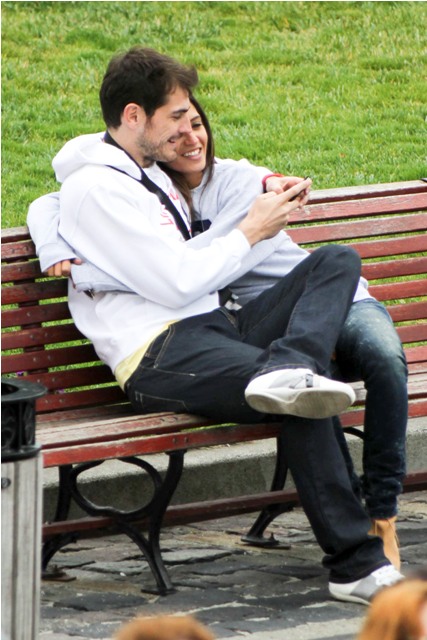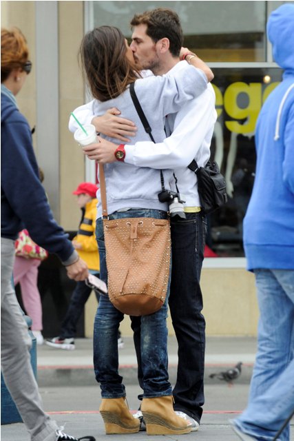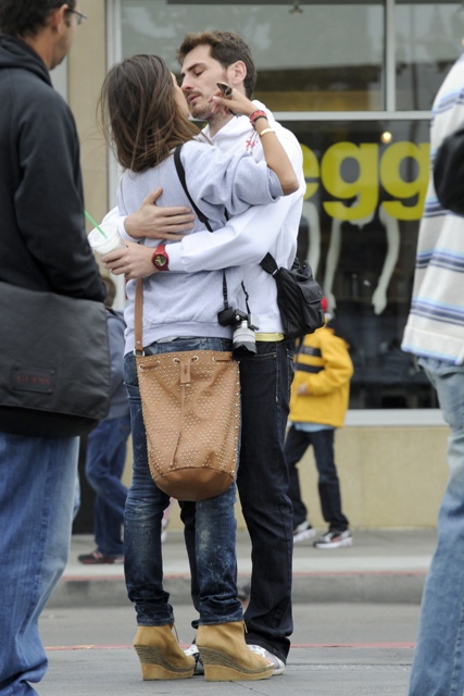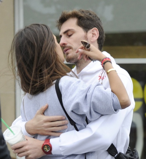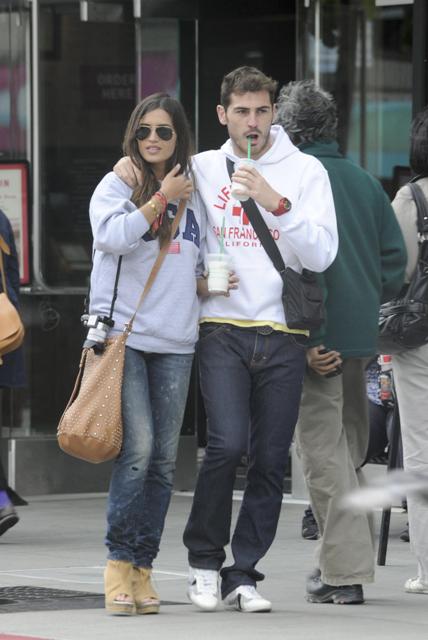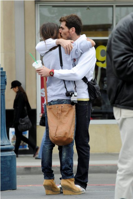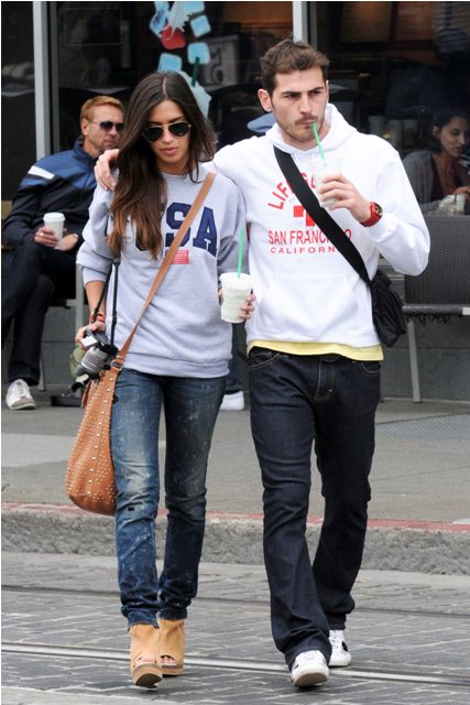 More photos have been released of Iker Casillas and Sara Carbonero on holiday in San Francisco yesterday. Apparently they left this morning after a short visit, hugging and kissing and touching faces with hands at the airport like they can’t stand not be wrapped around each other every minute of every day. Obsessed.