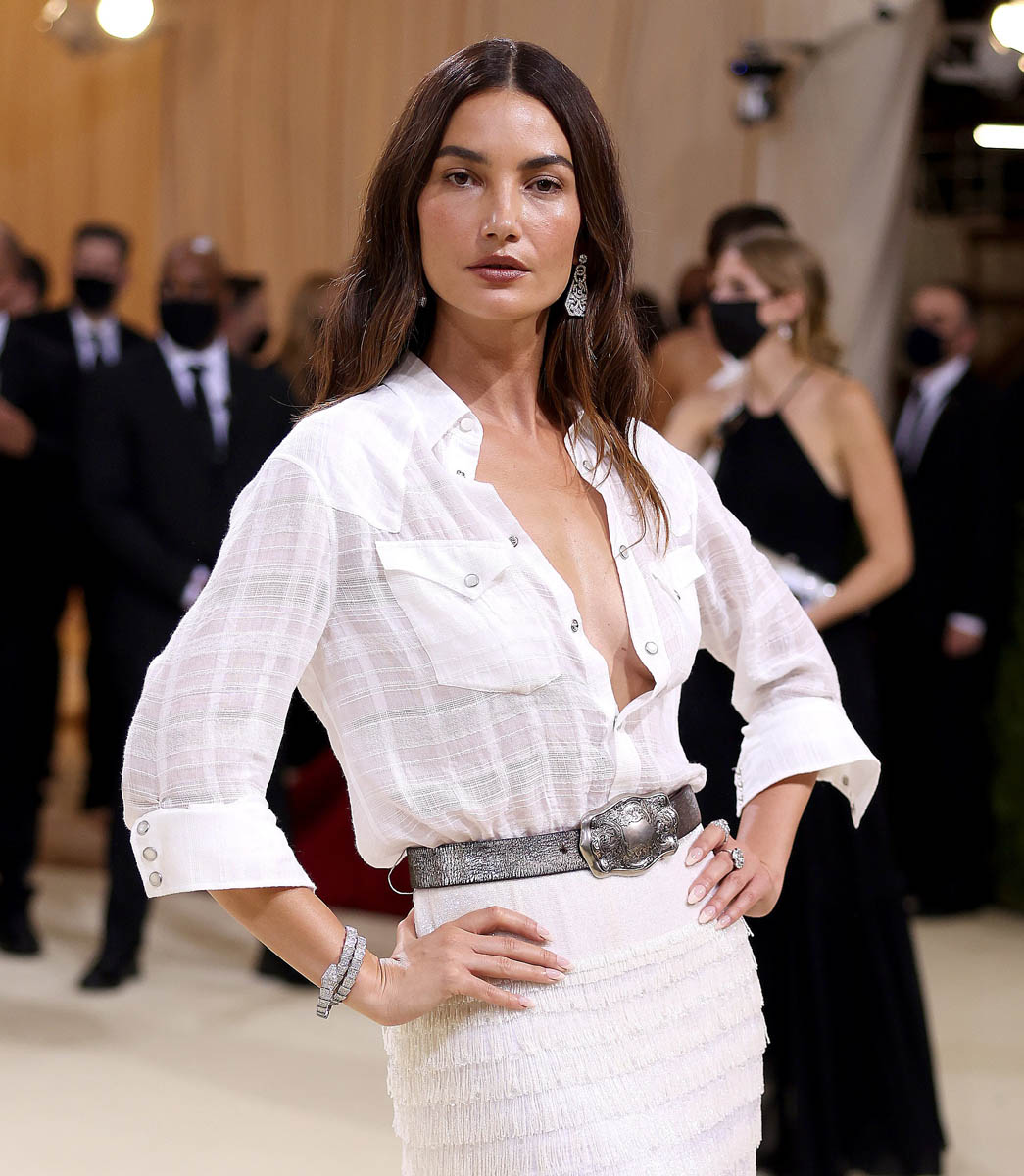 And finally, Lily Aldridge in Ralph Lauren. Classic Ralph Lauren. This is about as Ralph Lauren as it gets, so a checkmark on the theme but another check on the country music vibes too. Like June Carter Cash energy. So there’s a double down on the In America of it all and you can technically triple that when you consider her husband Caleb Followill and his musical roots.