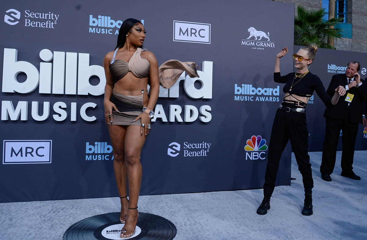 Cara Delevinge was sticking to Megan Thee Stallion like glue at last night’s Billboard Music Awards. Besides when Meg was performing or accepting an award, Cara was by her side in an almost territorial way. Her behaviour was… odd? I thought the way Cara was posing at the MET Gala a few weeks ago was a literal erratic, but last night was a different kind of weird. When I saw her on the BBMAs red carpet trying to add some wind to Megan’s dress by throwing fabric in the air, I thought she was an overzealous assistant.