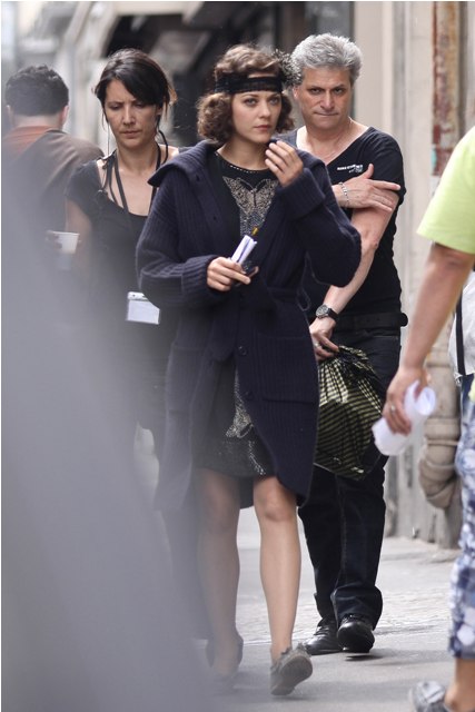 As you know, Inception includes Marion Cotillard too. She’s in Paris though, just beginning work on Woody Allen’s latest, photographed on set today looking, well, beautifully French. There have been some unconfirmed reports out of France lately that Marion and Guillaume Canet are done. Nothing slamdunk, nothing resembling reliable. But... I worry. Will keep you posted.