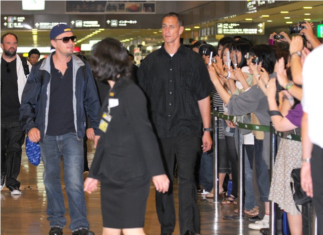 This is Leo arriving in Tokyo to promote Inception. And JGL in New York today shooting a new movie called Premium Rush. That’s a terrible title.