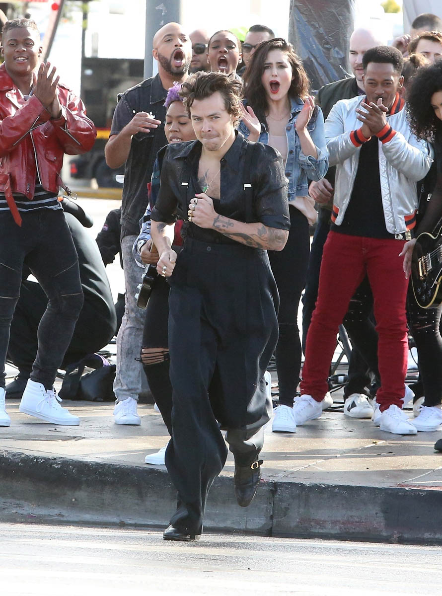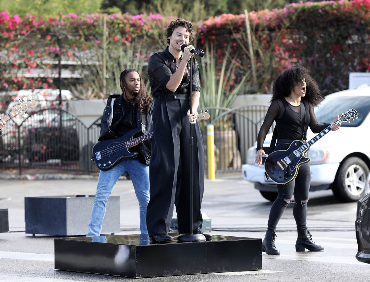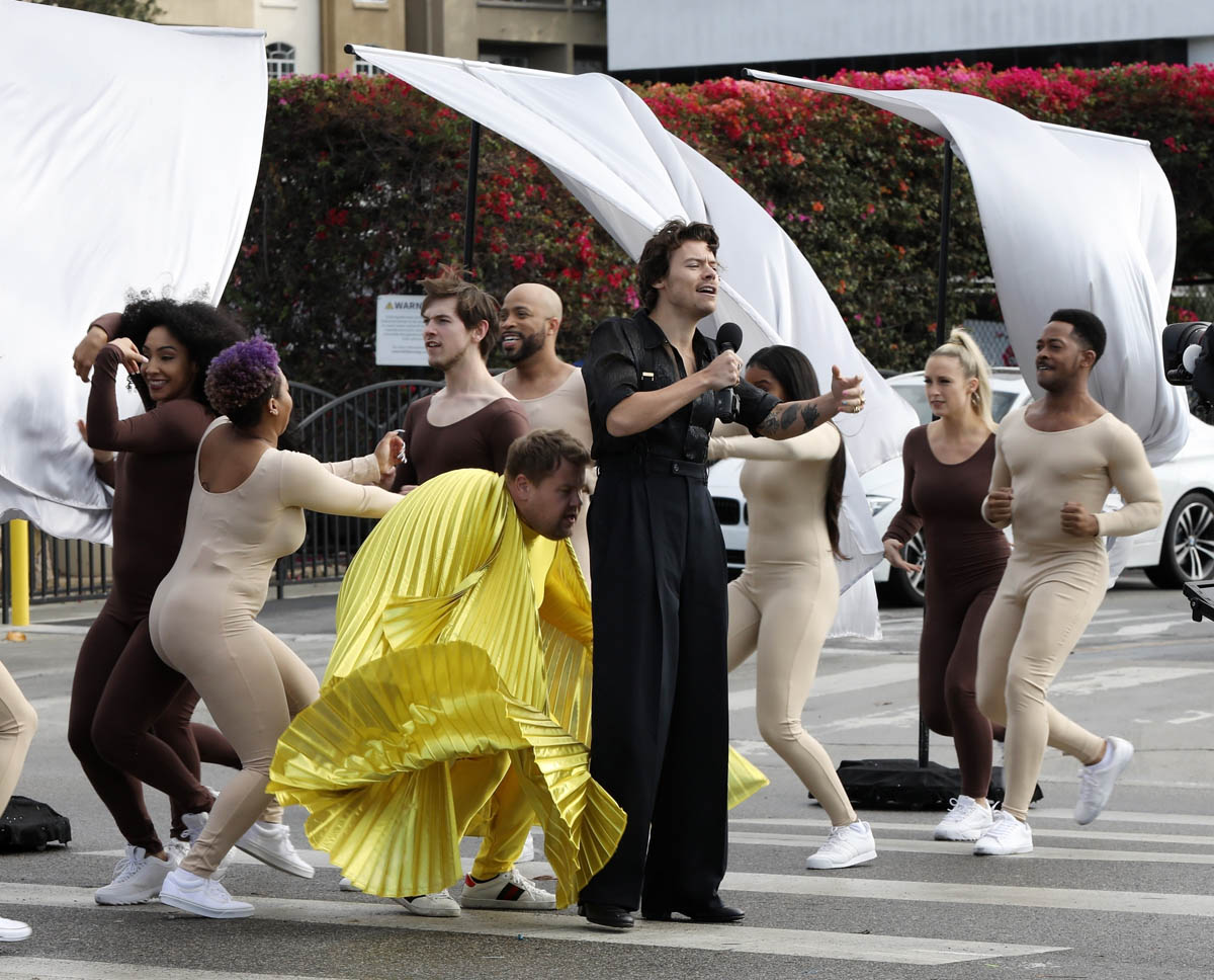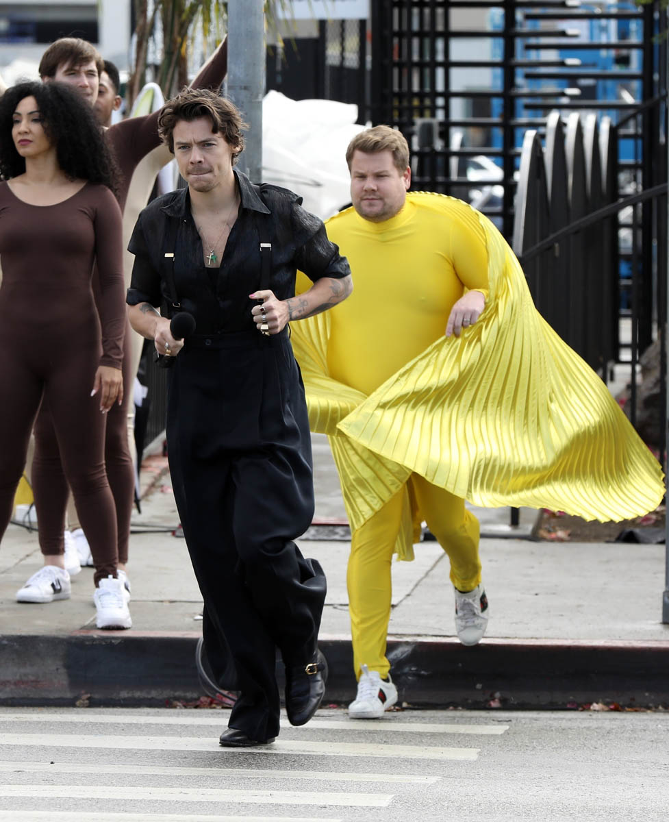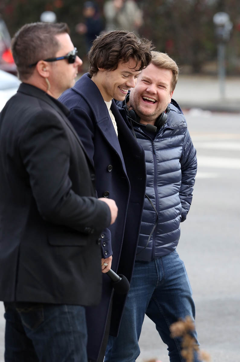 The real winner of Carpool Karaoke is Harry’s outfit. And me. Because Harry likes outfits where he doesn’t have to button the first five buttons. Harry has become a fashion icon in his own right, and he was on the host committee of this year’s Met Gala. The looks on The Late Late Show are no different. All three outfits are amazing. The colours are bright and different, without overpowering. The hair, as always, is really good.