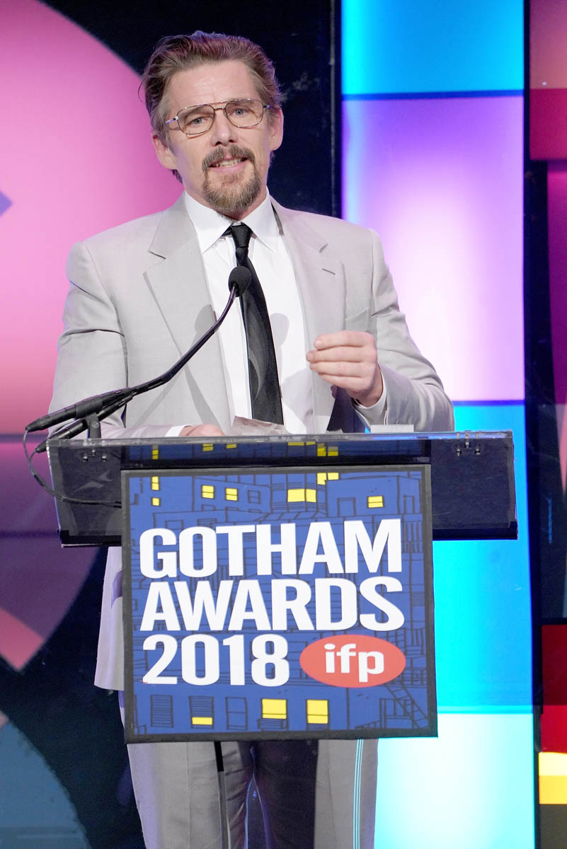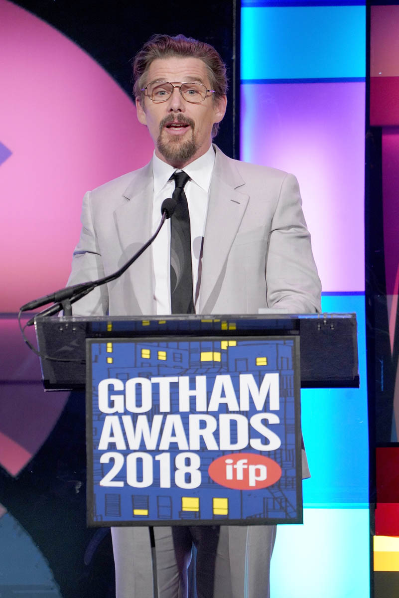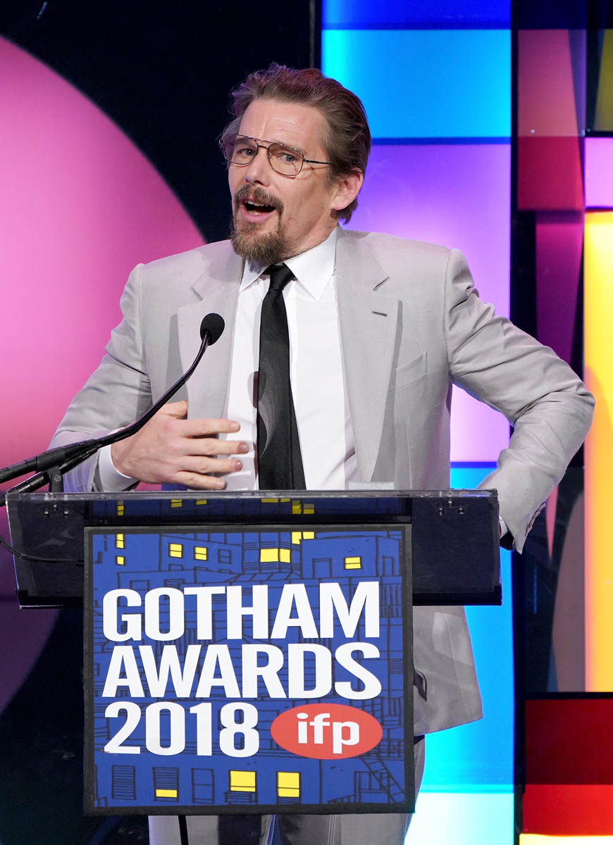 Ethan Hawke got the wildest applause of the night at the Gotham Awards last night after his Best Actor win for his work in First Reformed. It’s his first win for that performance, and with the National Board of Review and New York Film Critics Circle both announcing their picks this week, it could be the start of a win streak for him. If you’re talking word of mouth, Gold Derby reports Ethan now has stronger Best Actor Oscar buzz than Ryan Gosling does for First Man, especially given his Indie Spirit nomination too.