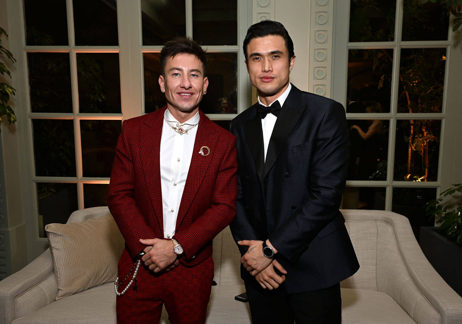 Barry Keoghan and Charles Melton attend Netflix's 2024 Golden Globe After Party at Spago on January 07, 2024 in Beverly Hills, California