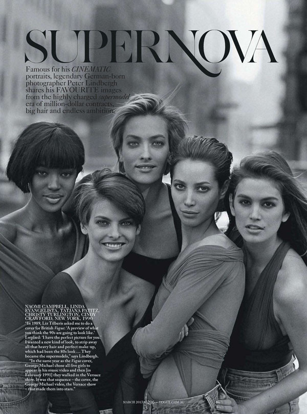 I grew up in the 80s. It was the era of the Supermodel. The REAL Supermodel. Heidi Klum is NOT a Real Supermodel, sorry. Back then, every issue of VOGUE and ELLE was a proper event. Back then, it wasn’t Victoria’s Secret, it was runway. It was Linda and Christy and Naomi and Cindy and Stephanie and Karen and Tatiana and Helena and Claudia and Gianni Versace had them all on ONE RUNWAY.