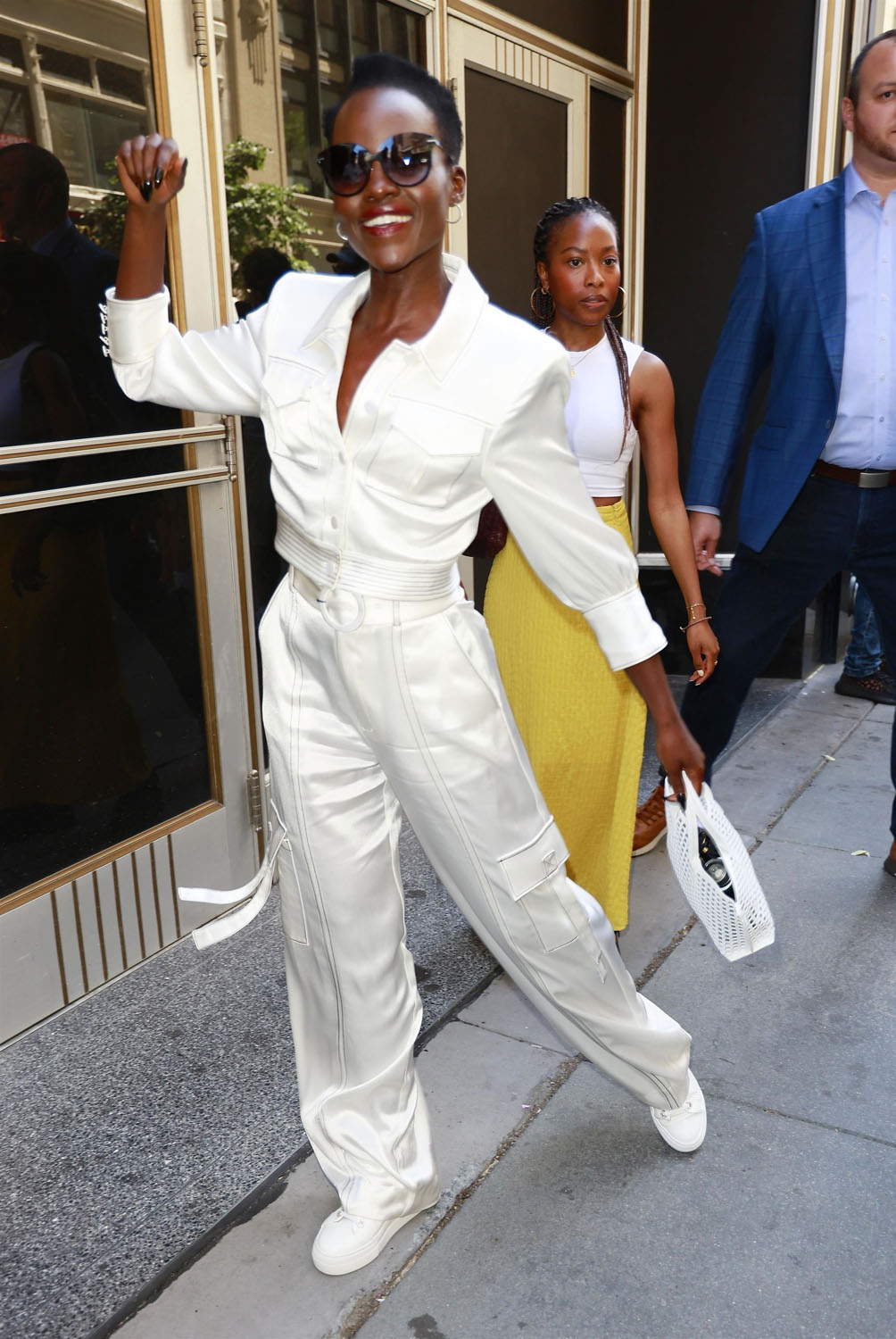More on Lupita – and also Celine! – in my next newsletter for The Squawk so for now please enjoy these shots of Lupita in various outfits while promoting the movie in New York the last couple of days. She is wearing the sh-t out of the Dolce tuxedo bodysuit with the dramatic necklace, and I’m glad it wasn’t what she had on during our interview because I don’t think I would have been able to speak.