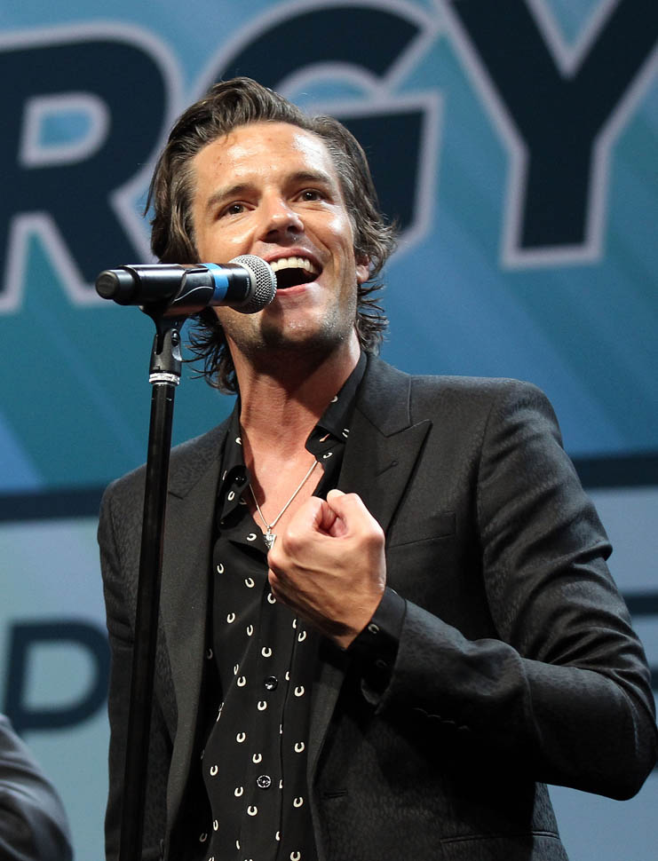 A couple of weeks ago, BFlow cancelled several tour dates. On Twitter he explained that his family needed him. I thought then that I might be done for a while, at least until a new Killers album comes out. But then Billboard put him front and centre in their Music Men of Style feature. And yesterday he showed up at the National Clean Energy Summit. It was in Vegas so he didn’t have to go far.