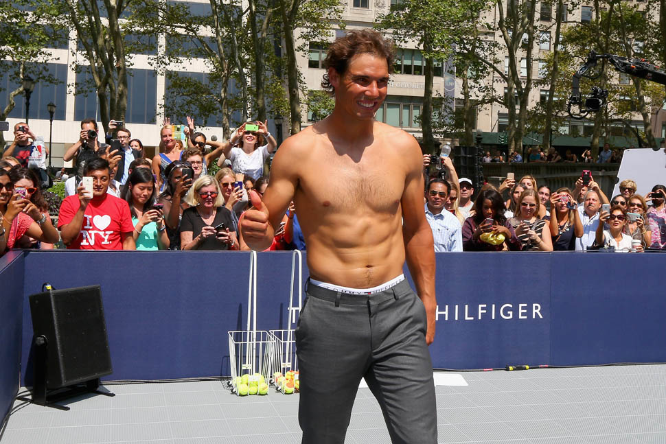 The US Open starts on Monday, which is why the tour’s top players have been in New York this week. They’re preparing and practising but they’re also endorsing. Nike set up a big photo shoot the other day with several of the game’s major players and yesterday it was Rafael Nadal front and centre for Tommy Hilfiger. He’s their new underwear man. The poster is OK. But the video…
