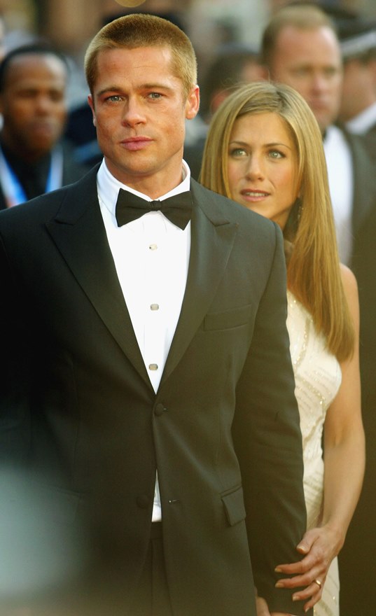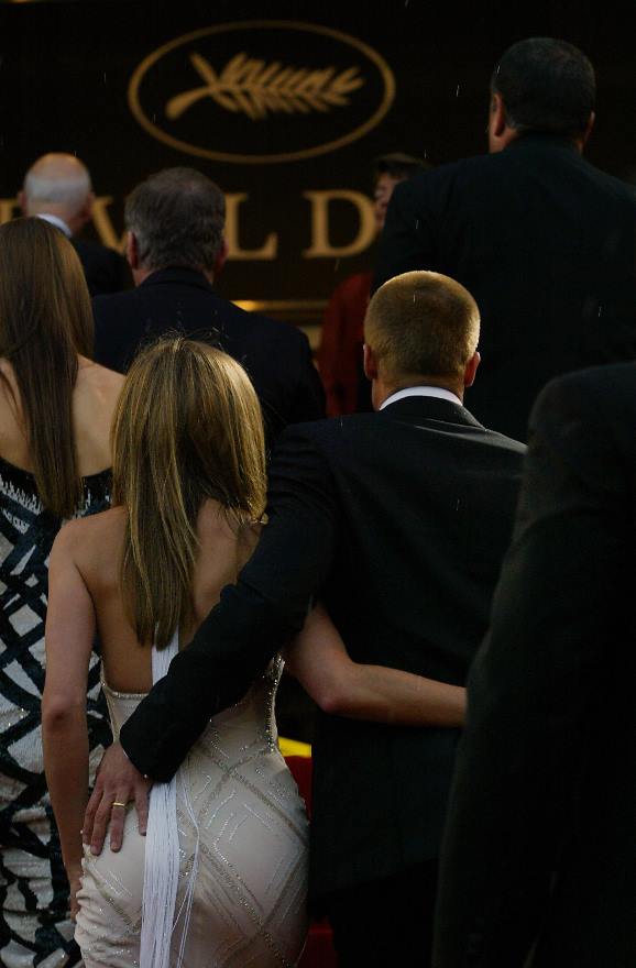 Some Gossip Nostalgia to start the day -- Troy is what Pitt was working on just before he turned 40 while he was still married to Jennifer Aniston. The film went on to screen at Cannes which is where this photo was taken – one of the most famous pictures of them together, face to face, smiling, seemingly invulnerable. It was May. Pitt had already been shooting Mr & Mrs Smith for 3 months. His arrival in Cannes with his wife was supposed to put an end to the rumours.