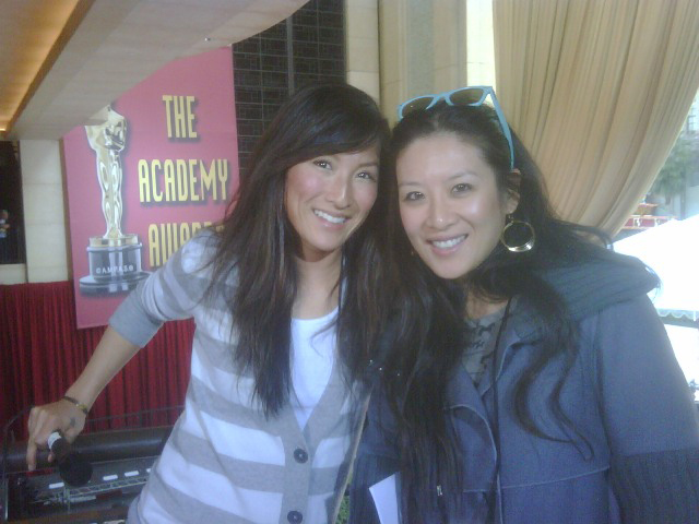 PS. TK and I before and after on the balcony. Thanks to Elsa Corsi, a local Vancouver jewellery designer for the gorgeous earrings and cuff! And for those of you who’ve been asking – since I was on Twitter the whole time too, this explains may arm behind my back throughout most of the show. Blackberry!