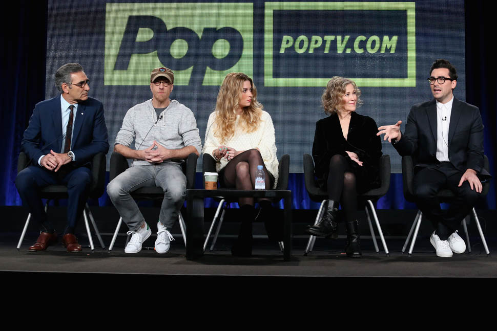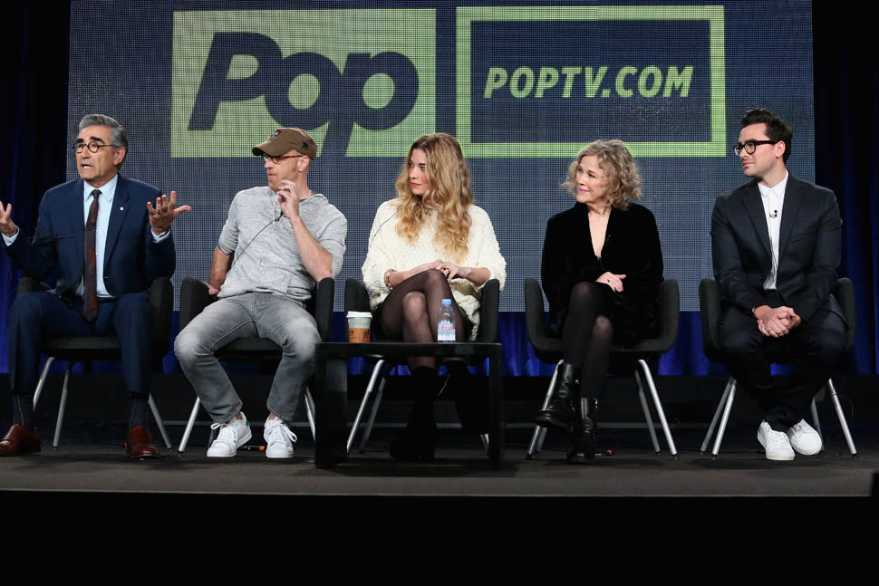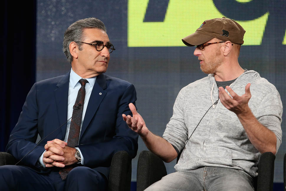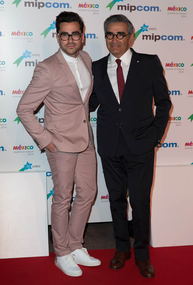 In Canada you know Dan from MTV. From The Aftershow. Or from Tina Fey’s Admission. Many of you who’ve come to our SMUT Soiree know him as the best dressed guy with, always, the best glasses. And now he and his father, Eugene Levy, are playing father and son, in a show about a rich ass family that’s lost everything and has to move to a hick town and start over. The cast was just at the TCAs last week and the reviews were solid. Even before the premiere, Schitt’s Creek has already been renewed for a second season.