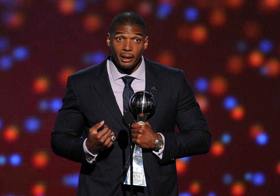 And Michael Sam showed up to collect his Arthur Ashe Courage Award, in an arena that included a lot of people who didn’t want him, who don’t get him, who think he’s beneath them, proudly holding onto Vito’s hand, proudly kissing him before he went on stage, proudly declaring his love for him while he was accepting his honour.