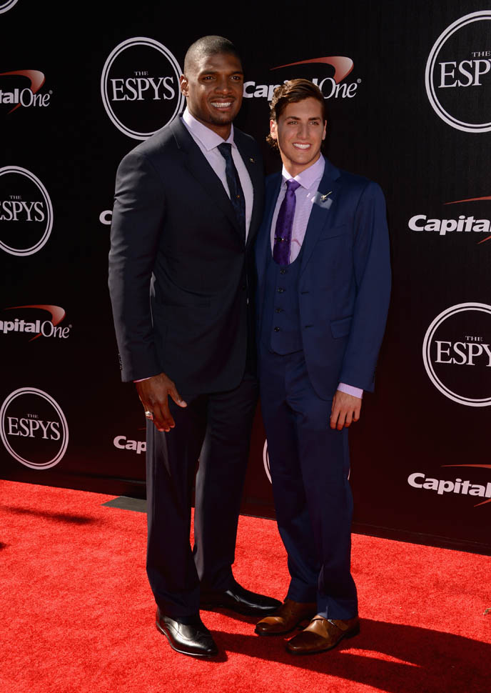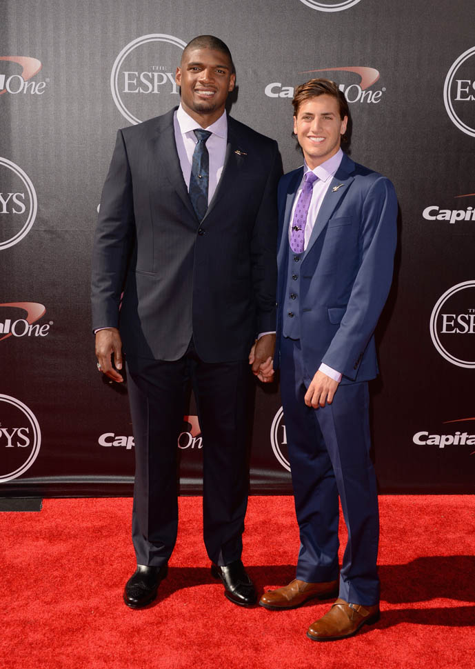 And Michael Sam showed up to collect his Arthur Ashe Courage Award, in an arena that included a lot of people who didn’t want him, who don’t get him, who think he’s beneath them, proudly holding onto Vito’s hand, proudly kissing him before he went on stage, proudly declaring his love for him while he was accepting his honour.