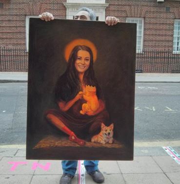 As we all wait for Baby Wales. They’re camping out already around the hospital. It’s been over 30 years since England’s seen the birth of a future monarch, and the first in the internet age. Historic on so many levels. My friend Mio sent me this attached photo of some crazy person outside the maternity wing. It’s officially a circus.