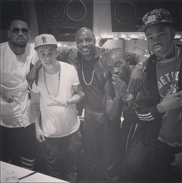 You know what I noticed about Justin Bieber’s face in those photos he posted on Instagram with Chris Brown and Akon and the crew in studio yesterday? (Great new couple, by the way. That’s the man combination every girl deserves.) Something’s missing.