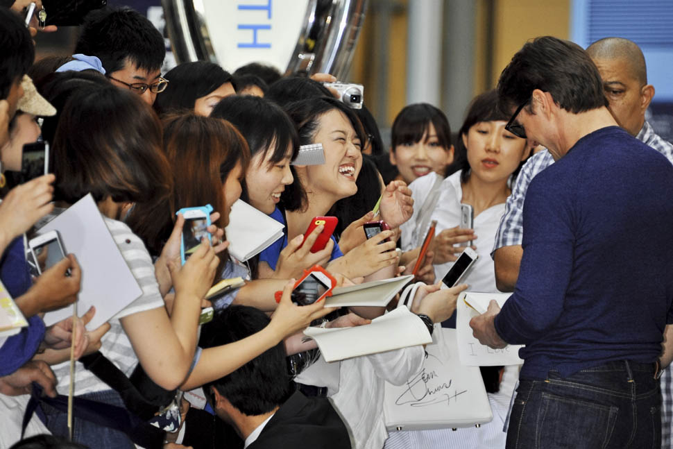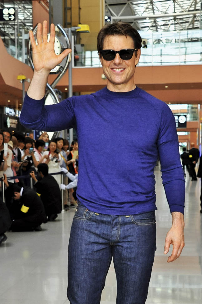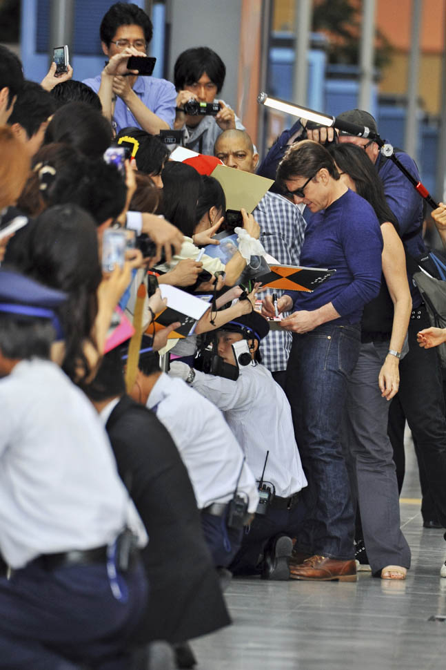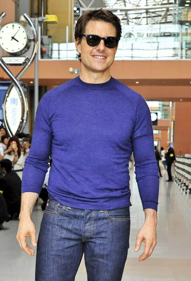 Tom Cruise arrived in Japan in today presumably to promote Edge Of Tomorrow. Didn’t do that well in North America…but so far it’s grossed over $200 million overseas and almost $300 million overall. (Source) Foreign moviegoers are sustaining his career. That’s his base then.