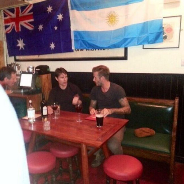 In other Tom Cruise news, he and David Beckham are still friends. They were seen together in London on Monday – this photo was taken by a patron at the pub and posted on social media.