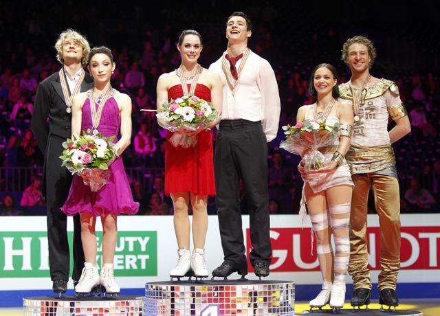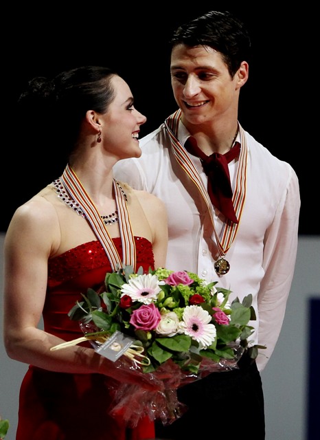 As mentioned yesterday, the only time I’ve turned on the TV this week is for figure skating. In figure staking, if they Twi-Hard for anyone, they Twi-Hard for Tessa Virtue and Scott Moir. But come ON, why can’t those two be in love for reals? Virtue and Moir took back the World title last night in Nice. You know what’s great about figure skating? Some of the athletes have a really hard time hiding their bitchface. There’s nothing quite like the drama that goes down in figure skating. Between the wife swapping, homewrecking, sabotaging, backstabbing, and tears, maybe that’s the reality show they should be pitching. A scripted drama would work too if you can get away with lowering the quality of the actual skating. It’s the frivolousness of Gossip Girl + the cutthroat of Game Of Thrones.
