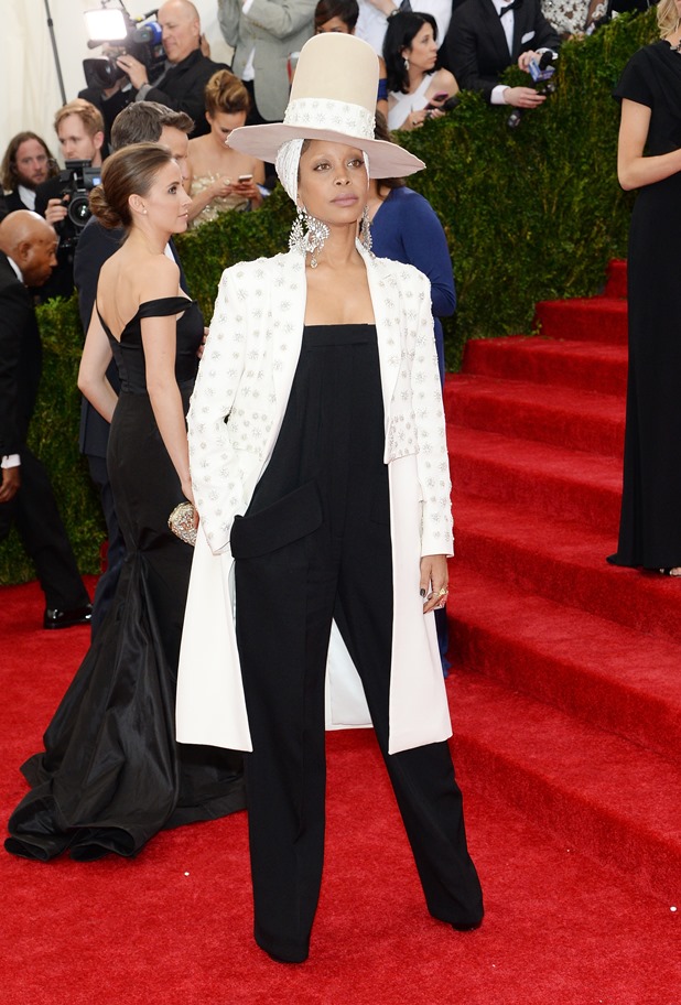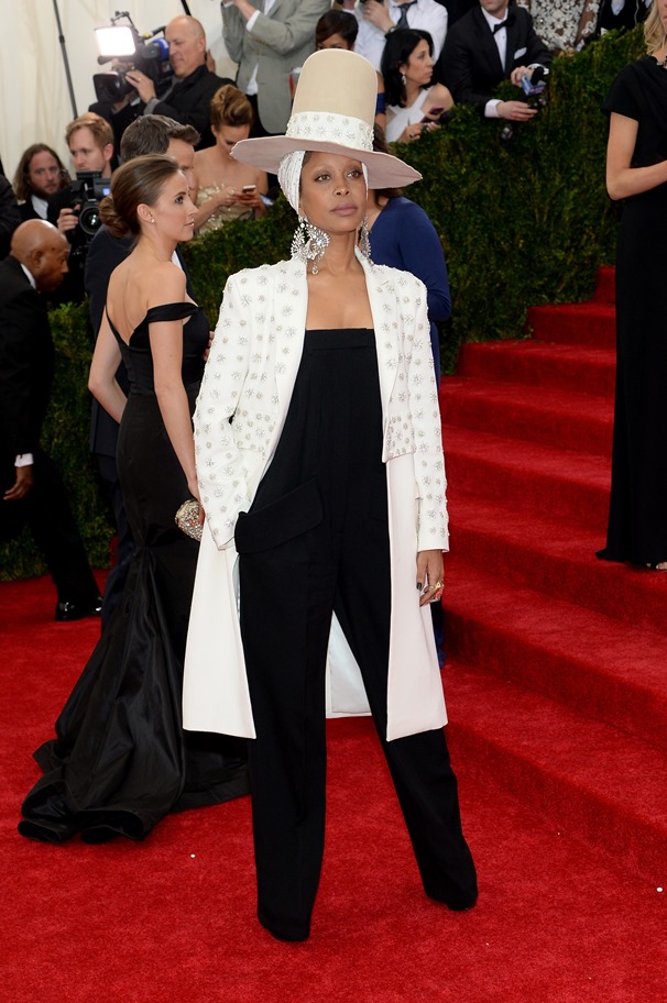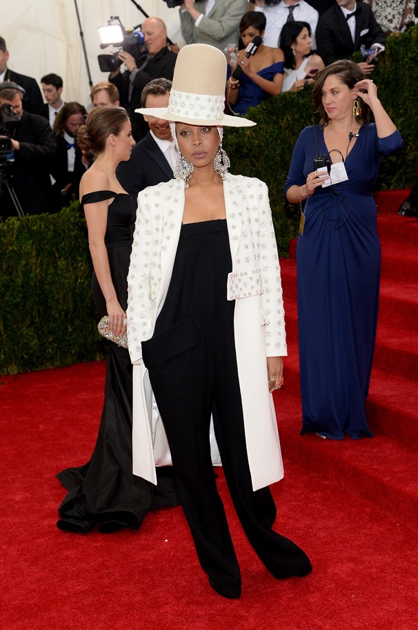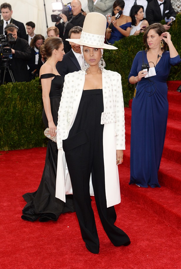 So it’s going to be a heavy day here at LaineyGossip. We try to cover most of the looks individually so it takes us a little longer. But for us, that’s the only way that fashion porn can be done right. Please keep refreshing and scroll down and click VIEW OLDER to get caught up on each post. We’ll be at least several pages long. And we’ll start with Erykah Badu, because why not? She’s a doula, did you know that? If you’ve had children, or plan to, I just want you to imagine her coaching you through. Also, that’s a beautiful jacket.