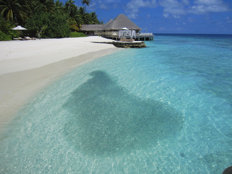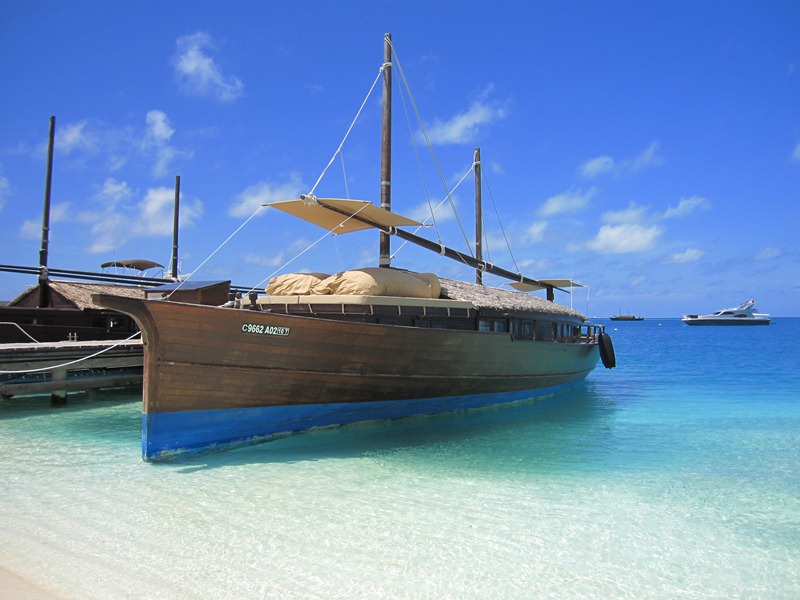 PS. That dark mass in the water there? Those are tiny little fish! And the boat you’re looking at is called a “dhoni”. It’s like a hotel room on water and you can book it for day trips or dinners. Most resorts in the Maldives are “over-water bungalow” styles. And our particular island is pretty much barefoot all the time. You see the speedboat behind me in the last photo? That’s where they drop you off and pick you up and when you’re arriving and departing. Which is what we have to do on Sunday. I just choked on that sentence.