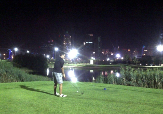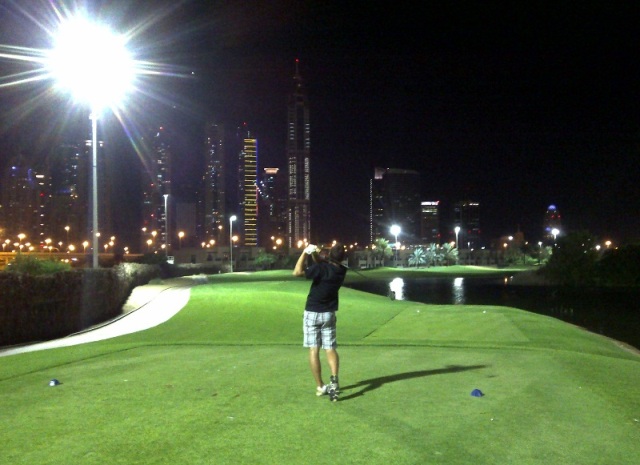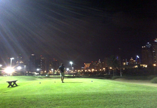 Night golf in Dubai is an incredible experience. Check out Jacek teeing off into the lights. And it’s not hard to find your ball at ALL. Even when you suck like me. Another bonus: there are no mosquitoes. But we do wonder a lot how many of the things we see here are indigenous to the environment. Every bird that flies by, and they’re all so exotic, we ask ourselves if it was imported. It doesn’t matter here if they don’t have it. The point is they will go and get it. Like, even an entire ecosystem.