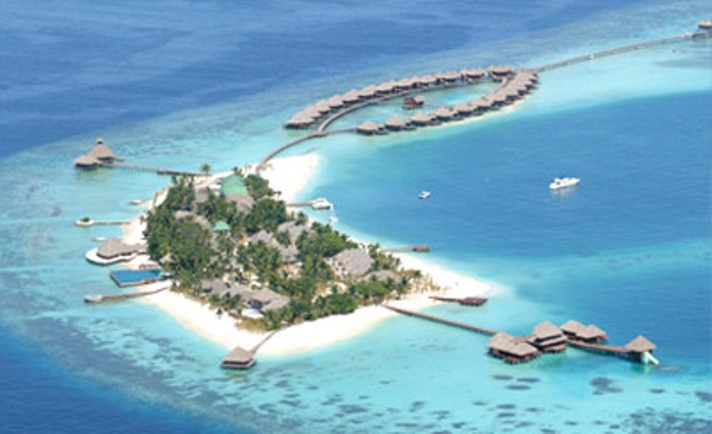 We travelled for 27 hours to get to the Maldives. And I feel like ...it should take that long, shouldn’t it? To get to, at the risk of sounding cliché, paradise? It’s bright all day from the minute we wake up. Then at 4pm it rains here for 2 hours, just as I have to start working. The rain stops when the bar opens. Even the weather is accommodating. Some of you thought I was exaggerating yesterday when I talked about how small our little island is. Here’s an aerial shot. See? That’s a 5 minute walk, tops. And there are over a thousand of these all over the place.