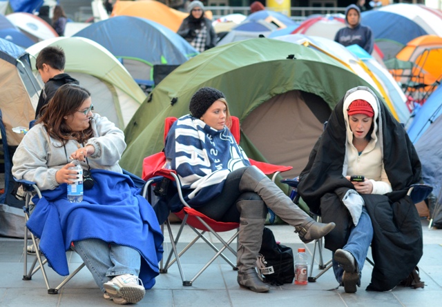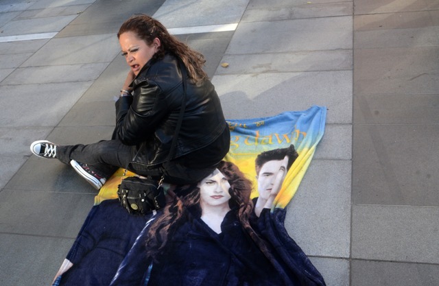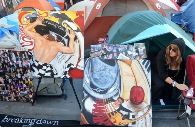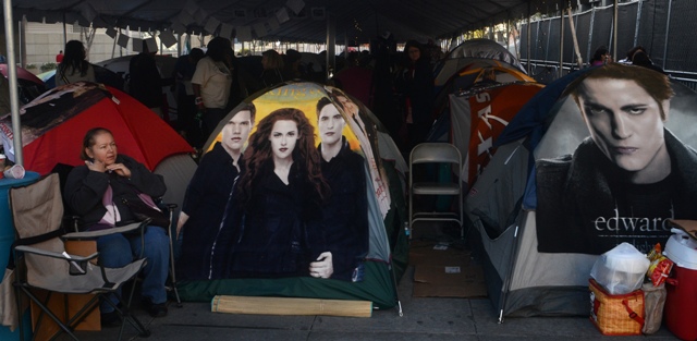 Will you miss the Twilight tent city? Last night was the last night time. And now that it’s over the Twilight Moms will have to go back to work. I’ve always wondered how that worked. Do they request a proper vacation day -- or a few vacation days to build in for travel time and camping out time -- or do they call in sick? I thought about this yesterday when I walked past the kids here in New York at Rockefeller Center. One Direction is performing this morning on The Today Show. If it’s a rite of passage for a teenager, to queue overnight for a boy band, can it also be considered a rite of passage for a proper adult to queue overnight for Edward Cullen?