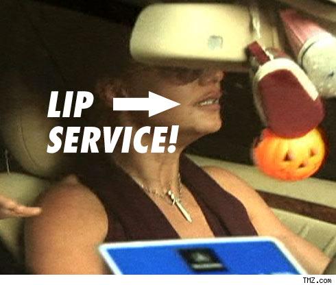 Every day, stranger and stranger. Yesterday she visited a medical building. When she emerged, her lips looked like this – see below from TMZ. And then upon driving away, swarmed by the paps and concentrating on covering her mouth, she ran over a photographer’s foot. Then of course she burst into tears before getting waved away. And the worst part is…the lips look hideous!