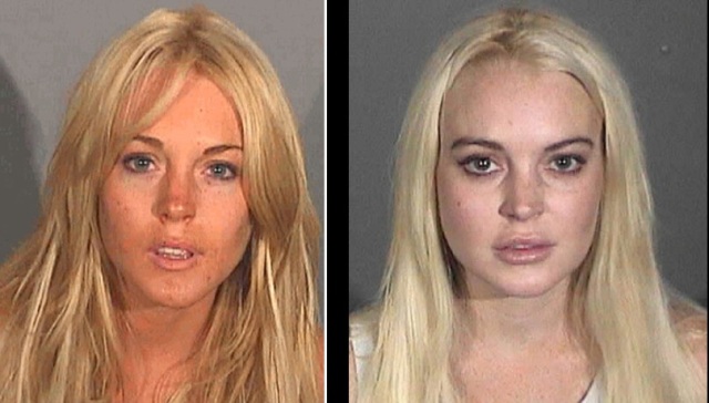 Has a Celebrity Mug-shot Art Installation happened yet? They’d have to dedicate a lot of wall space to Lindsay Lohan, as hilariously pointed out in a top article today on PEOPLE.com featuring all 5 of them side by side. Look how pretty she was still when the first one was taken in 2007. F-cked up and out of it, yes, but her lips aren’t taking over her chin and that permanent bloat hadn’t settled in around her face yet. Compare that to the brand new one...