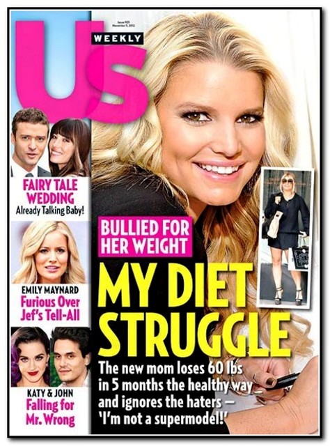 Meanwhile over at US Weekly, they’ve decided to challenge PEOPLE’s Timberlake wedding exclusive with a newsstand MiniVan Majority favourite -- Weight Loss! And this time starring Jessica Simpson who’s apparently being “Bullied For Her Weight”. It’s a pretty smart strategy.