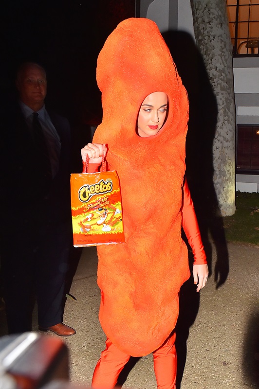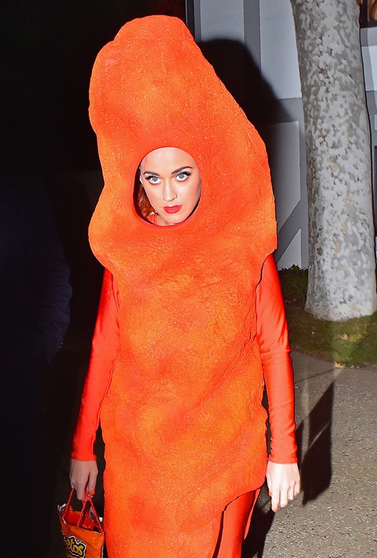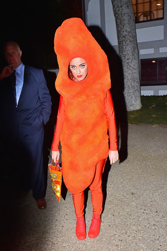 But as much as I normally object to her, I prefer Katy Perry’s costume: a giant Cheeto. Or a sunburned dick. You’d have to crank the air conditioning but the best part is no one knows what’s going on underneath. That’s the highest level of comfort.