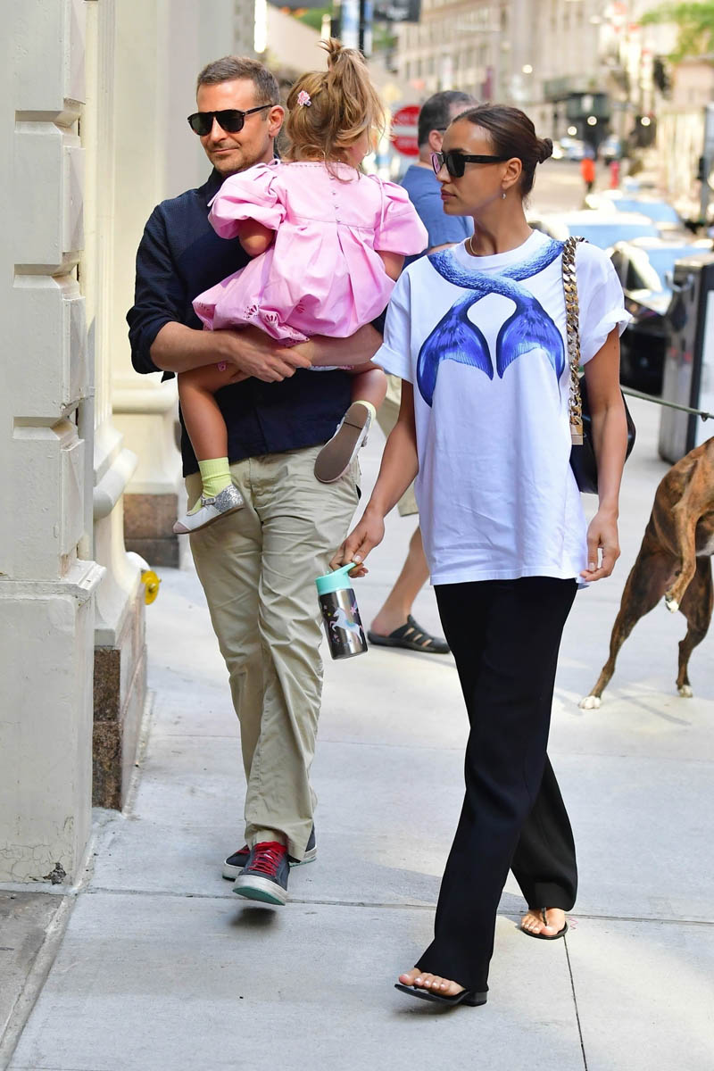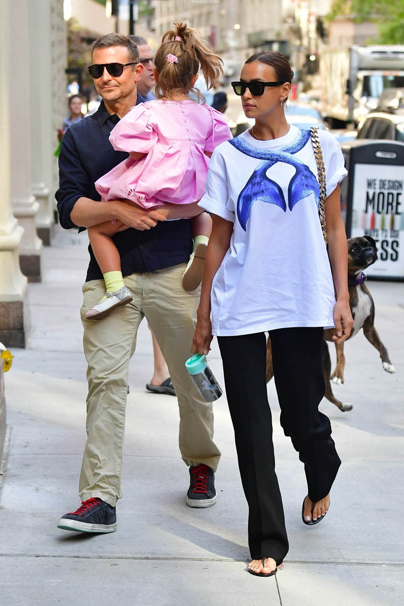 Since then, Irina’s been back in New York, back to her usual routine, papped almost daily and today with Bradley Cooper as they went for a walk together with their daughter. Also including pictures of her yesterday in a corset over a pair of baggy jeans and combat boots. I feel like Kanye would approve of this look.