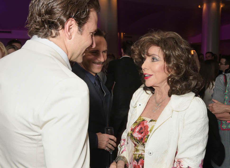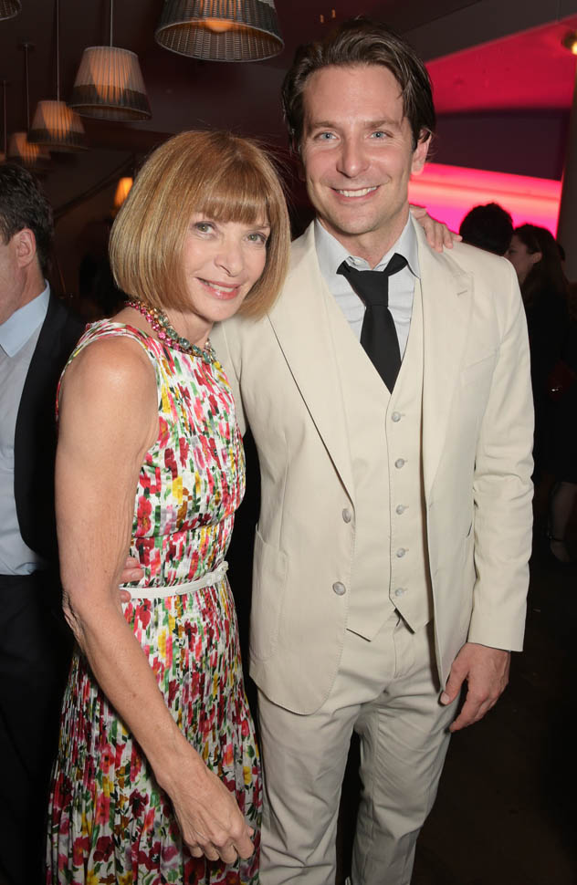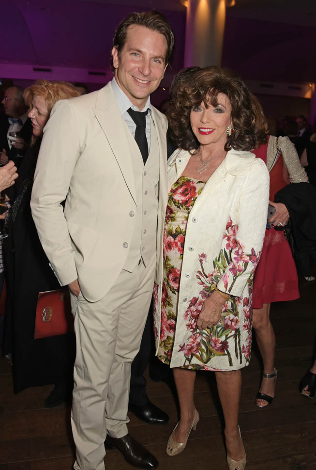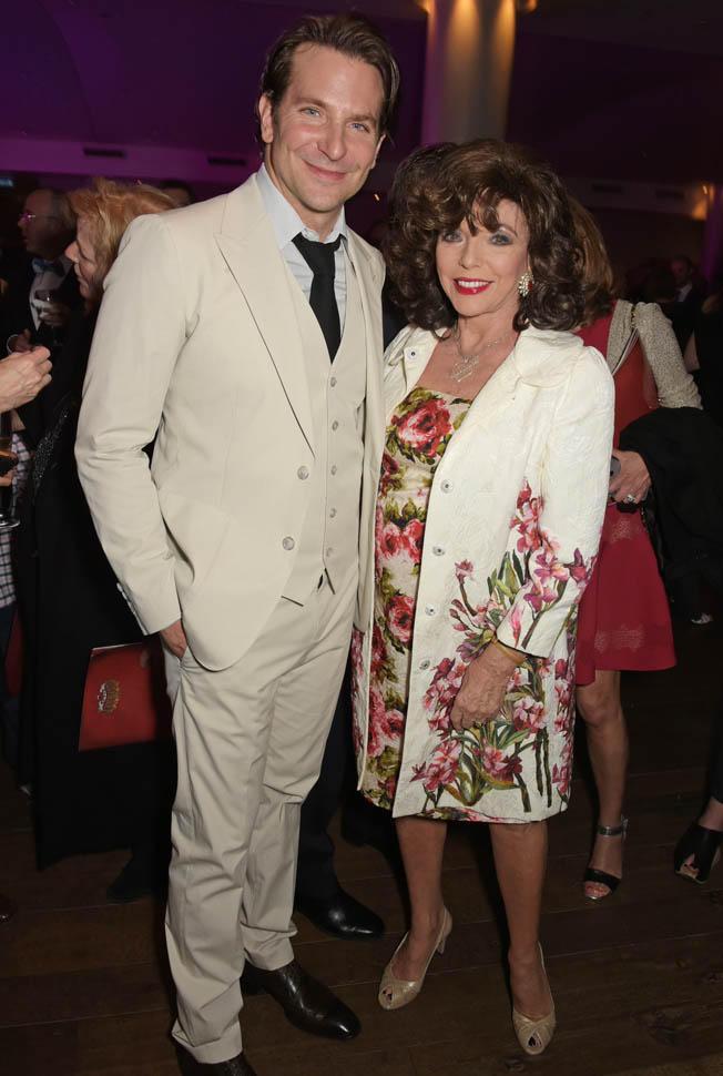 Except they definitely didn’t pose together at the party. I’m not sure she was even photographed at the party. Instead, he was hanging out with Anna Wintour and that glorious bitch Joan Collins, no doubt a much more interesting conversationalist. That kind of woman must bring out a certain side in him.